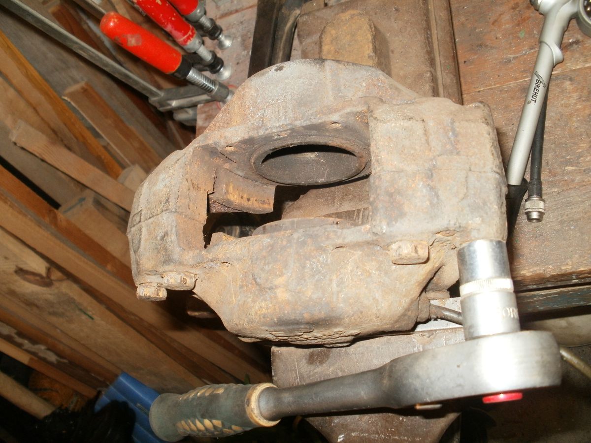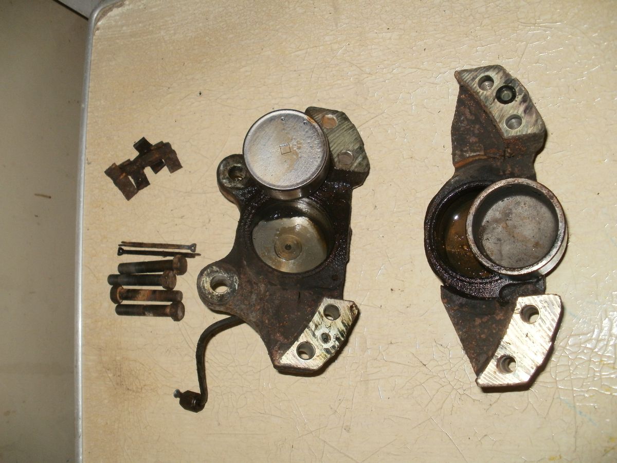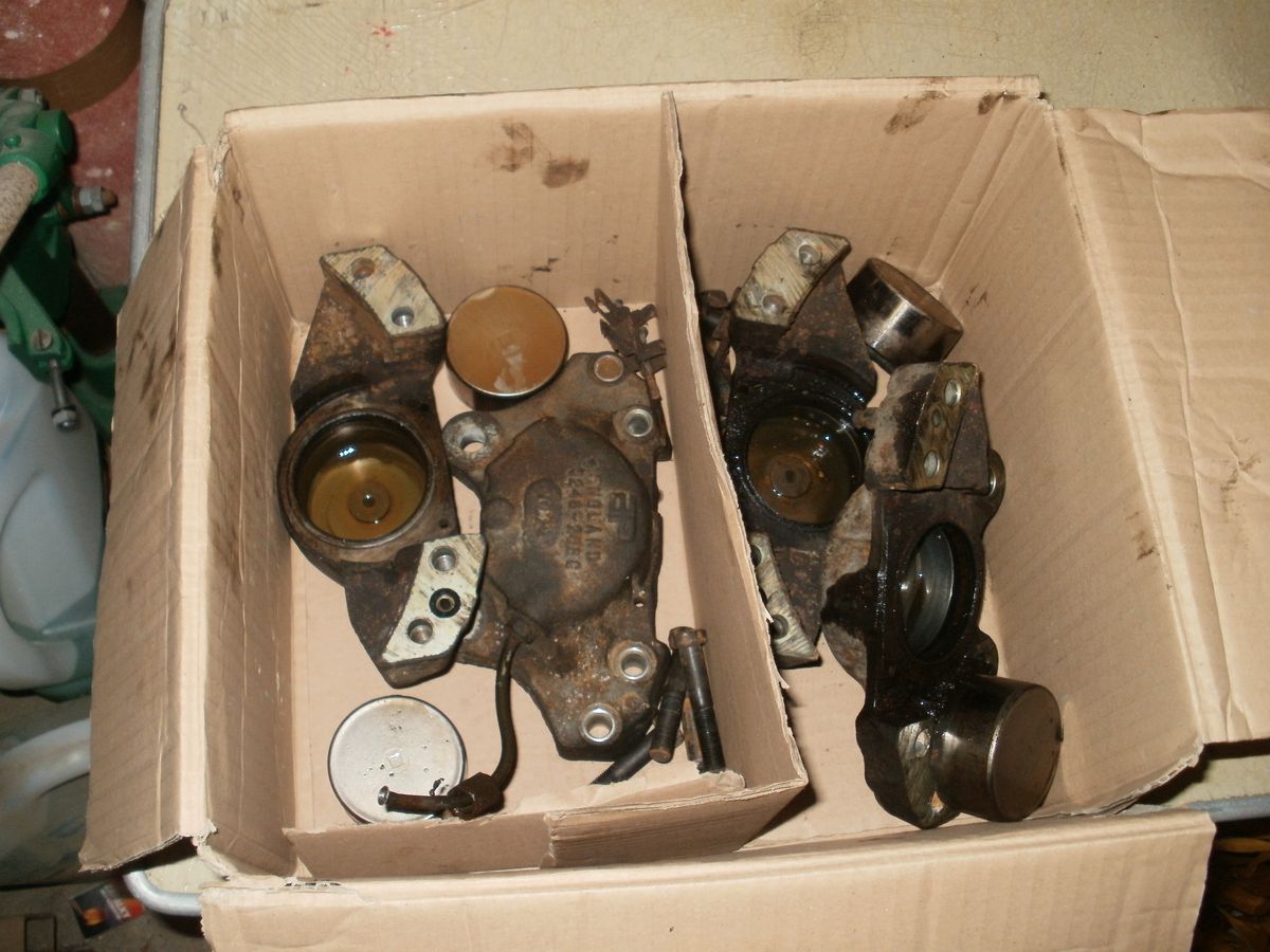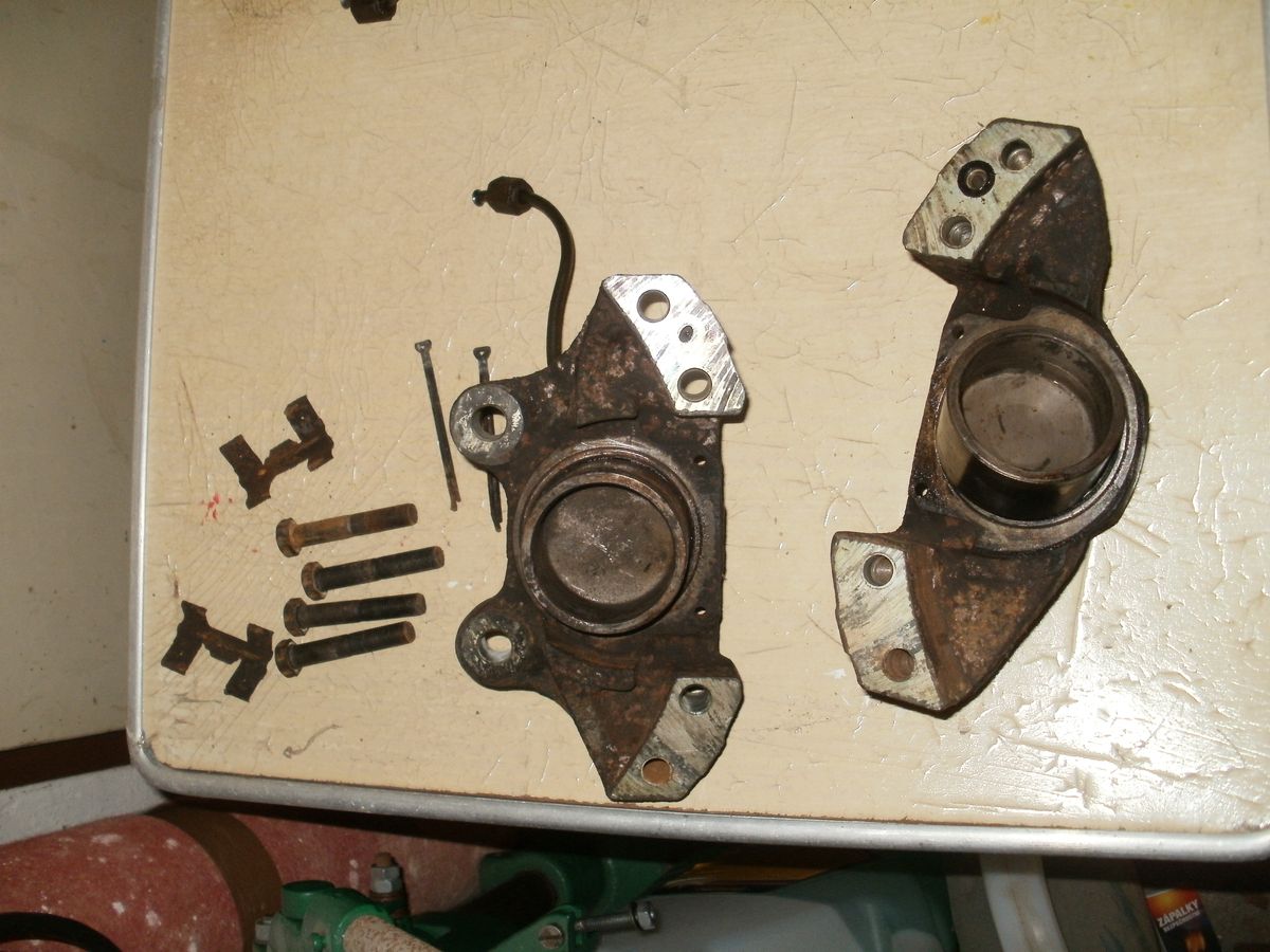 Pístky si přeleštím, gumy zkontroluju. Na jednom třmenu chybí odvzdušňovací ventil, asi to budu muset zkusit opravit, vypadá na standardní ventil.
