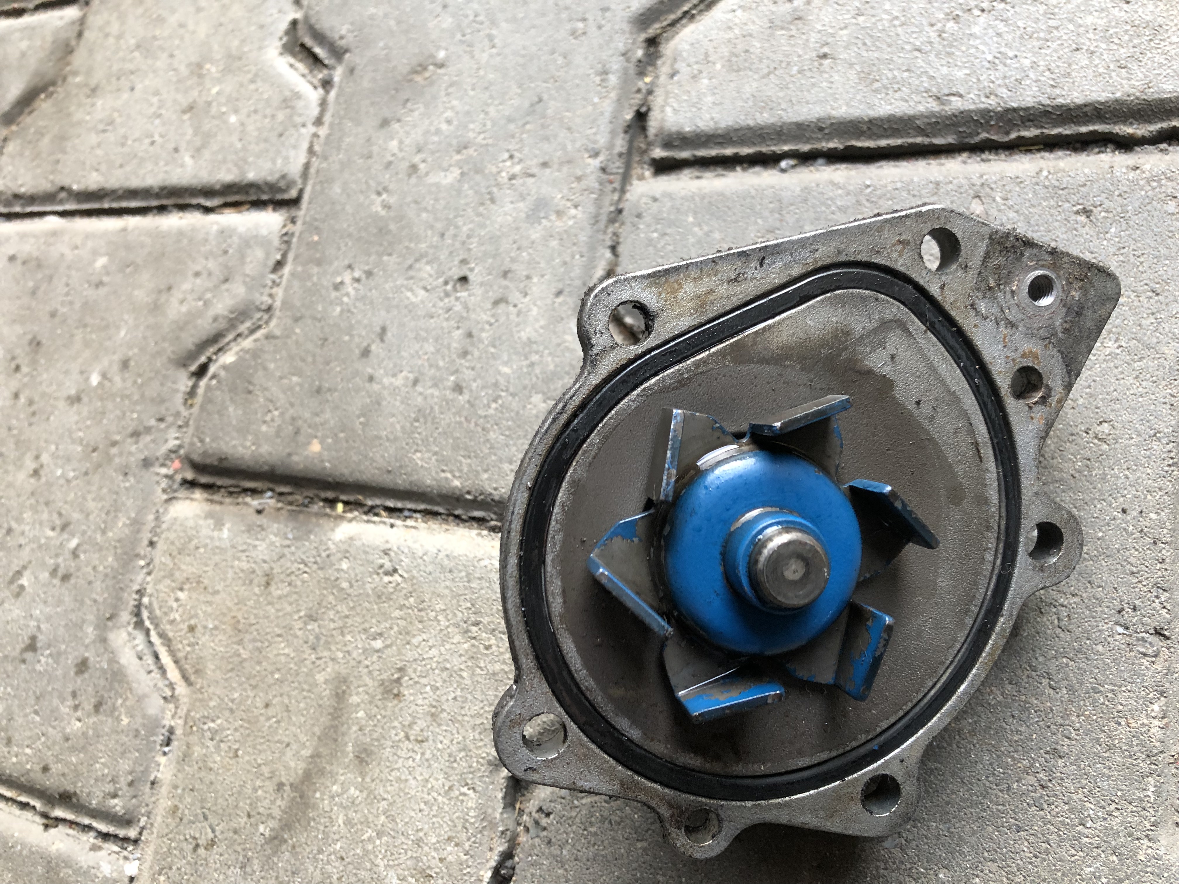 Původní pumpa byla SKF. Ale při protočení je taková zadrhnutá a uvrzaná. Gumové těsnění v ní bylo dost slehlé, tak jestli to neproteklo třeba i přes něj... nevím. Nová Meyle pumpa měla sice v krabici dvoje nové těsnění, ale tedy musím říct, že ta celkem tenká gumička ve mě moc důvěry nevzbuzuje.
