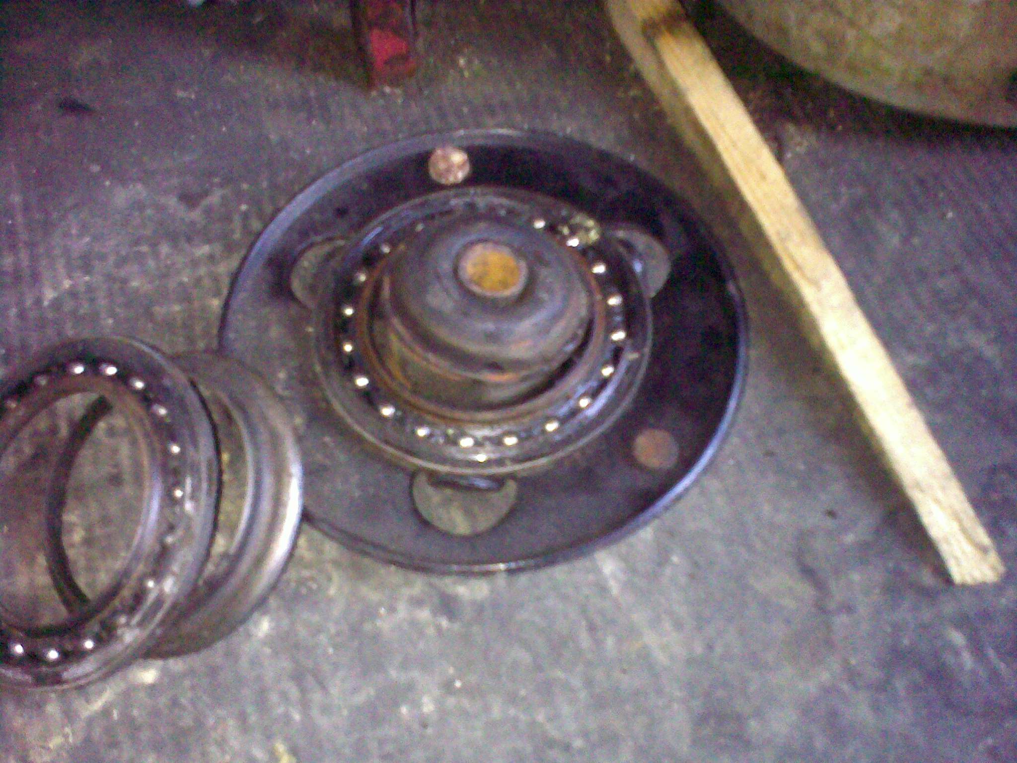 ... ložisko je #9. Ložisko nemělo vůbec kroužek a miska pružiny #8 byla opřená rovnou o kuličky ložiska