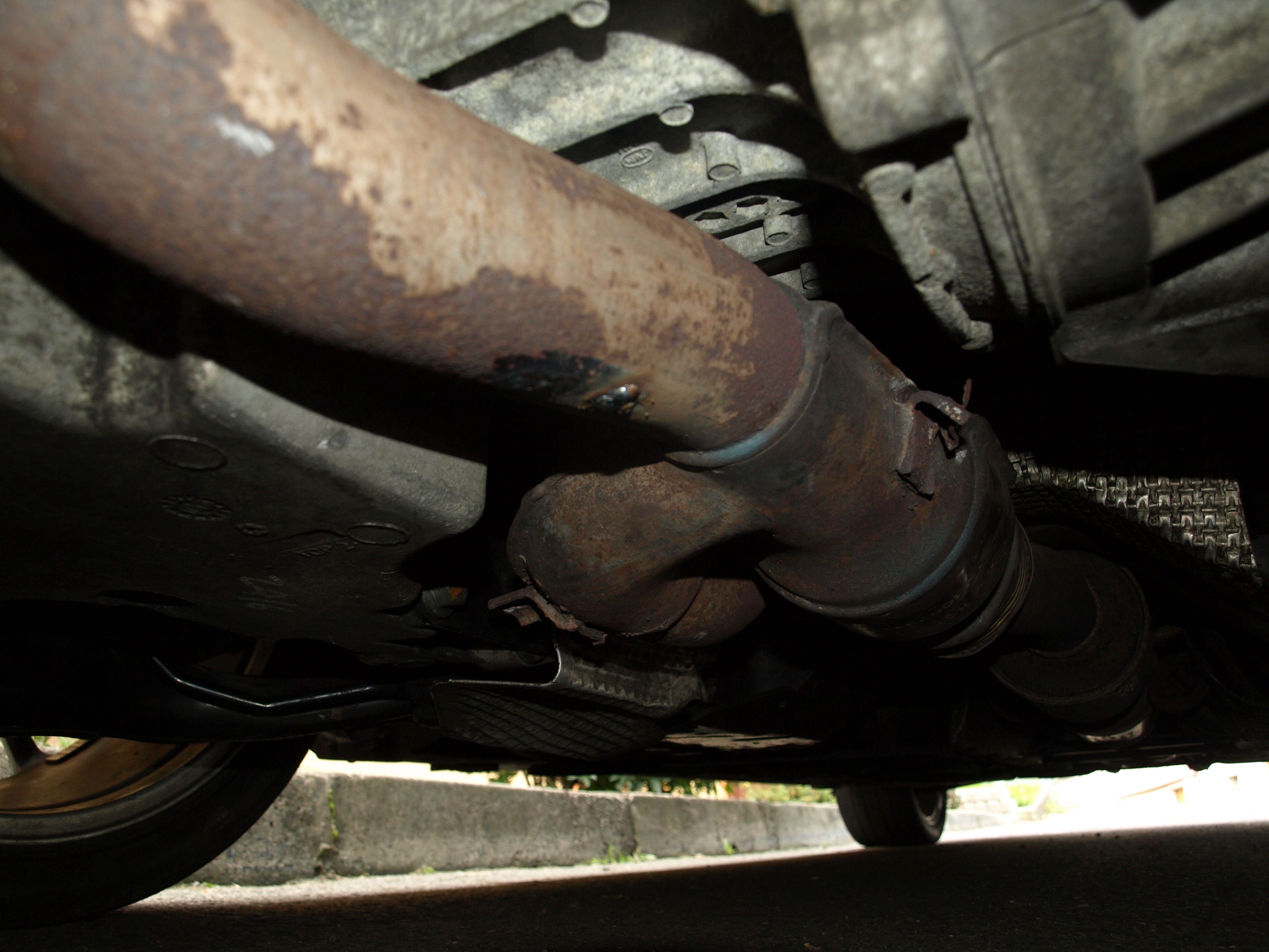 Další věc, která mě dlouhodobě trápila, bylo dost škaredé plechové drnčení při násobcích cca 900 otáček. Ono sice po pořádném zahřátí zmizelo, ale ráno, když jsem projížděl dědinou, nebo jsem chtěl někomu auto předvést, to byla ostuda jak řemen. To drnčení bylo fakt hodně ostré a silné. Už jsem byl smutný, že budu muset koupit první díl (spoj dvou trubek do jedné s před-katem), že to jde asi z toho katu... ale jak jsem byl u Jarka, tak jsme tak trošku špekulovali nad tím... Shodou okolností tam přijel i Martin B. řešit přesně to samé drnčení výměnou tohoto dílu. Já pak odjel, ale kluky po prohlédnutí napadlo, že to asi nedrnčí ten kat, ale vnitřní trubka dvouplášťového provedení (matně si vzpomínám, že mi to stejné asi říkal i Mirda na srazu, ale zřejmě jsem to nepochopil). Takže návrh byl: "vyzkoušej flexou tu přední trubku probrousit až na tu vnitřní a provařit je k sobě". A tak jsem se do toho dneska se sósedem pustil a nakonec to byla akce na pár minut, protože první svár celý problém vyřešil