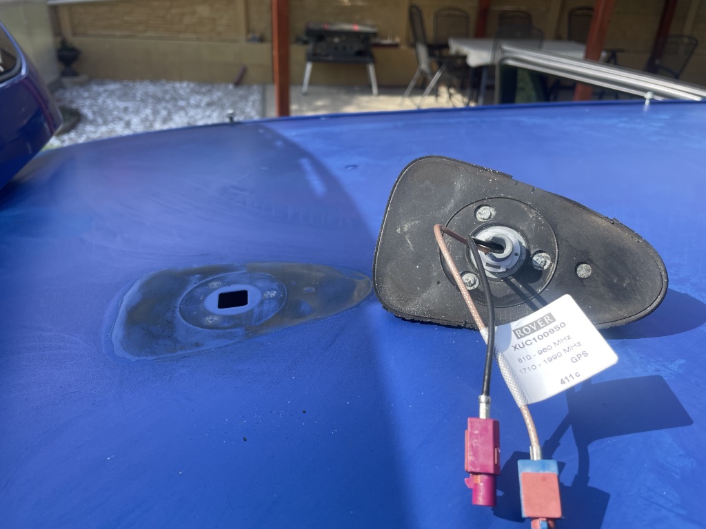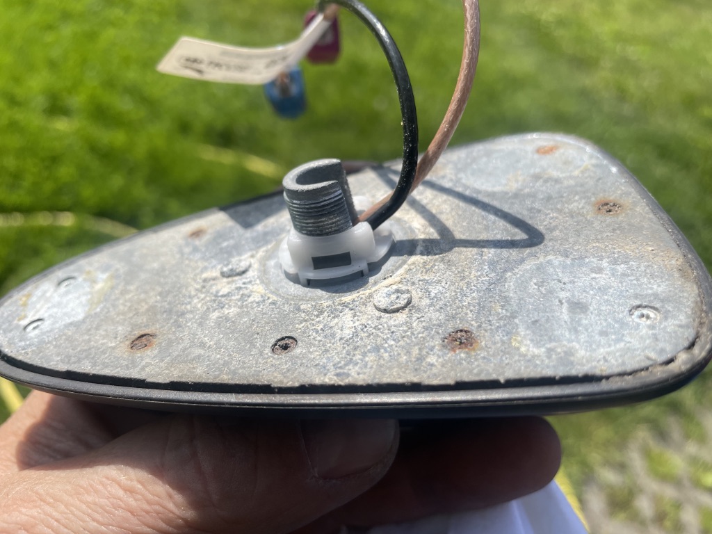 Anténa - ploutev byla zespoda v dobrým stavu, vypadá to, že tudy tam nezatejkalo. Musel jsem vyřešit co s rozpadlou těsnící gumou. Byla teda rozpadlá jen ta hrana, která kouká z pod ploutve ven, co tam ještě zbylo, jsem ořízl a nechal gumu jen na ploše a ještě ji malinko namázl střešním tmelem, tak aby nevylezl ven. Časem (snad) to udělám nějakým černým silikonem.
