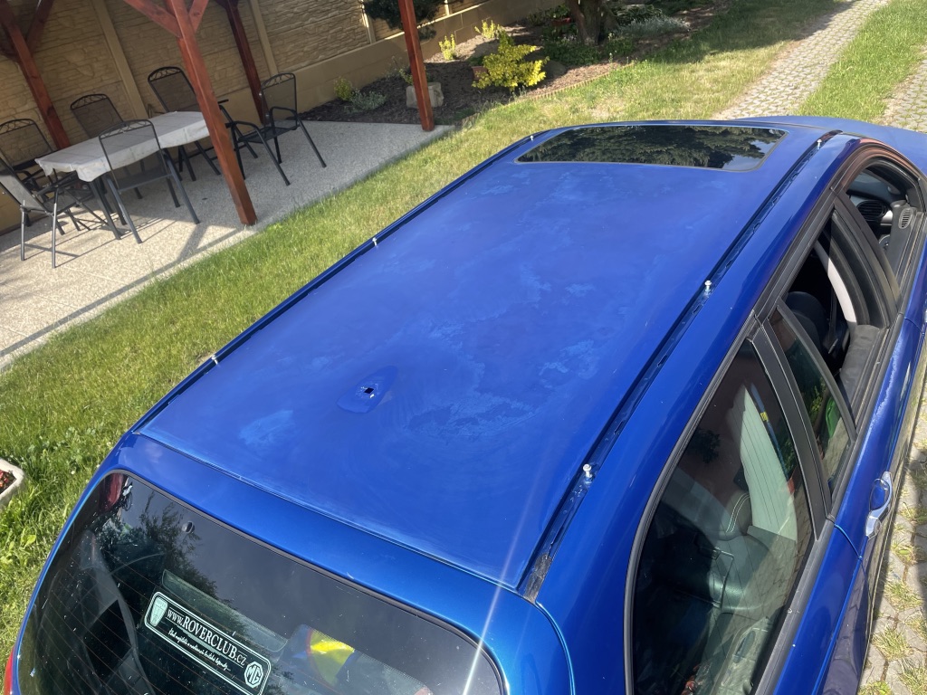 Na střeše mám zatím pár flíčků, kapota je horší. Letos a zimu to s tím nějak překlepeme a uvidíme jak dál. Ale než to komplikovat šíleným řešením nového lakování, tak to asi fakt cesta bude. Na kolik ta střecha v materiálu přišla?