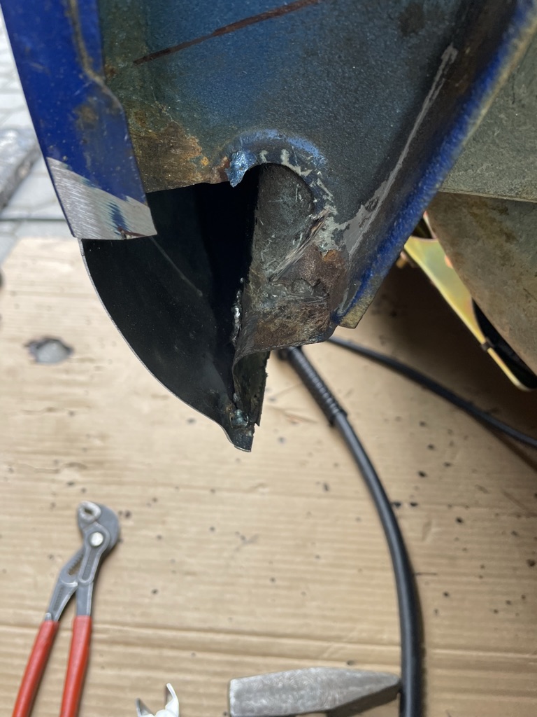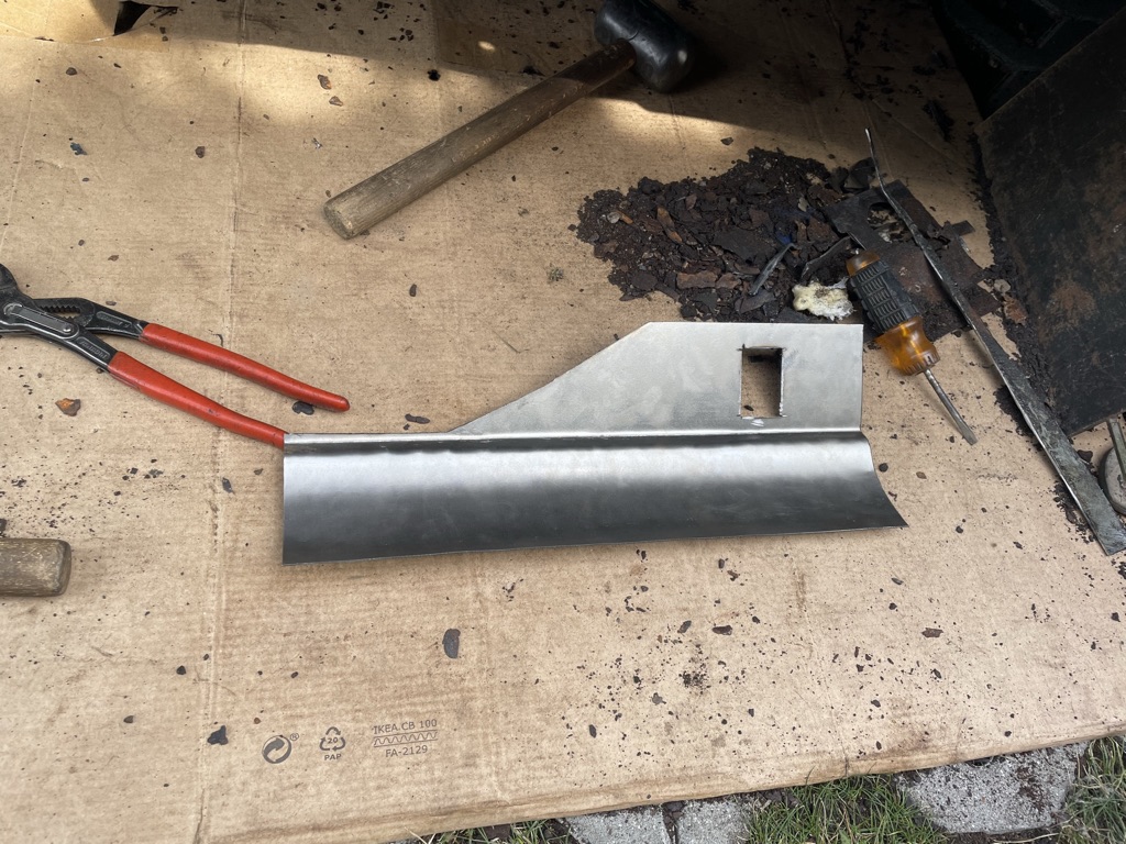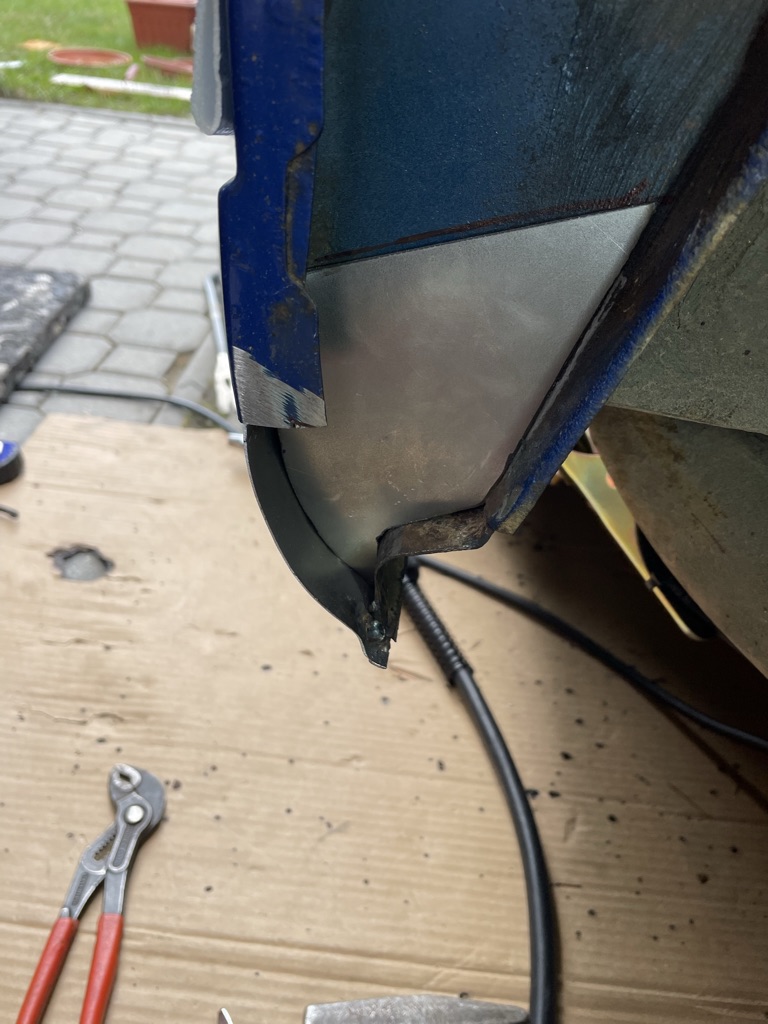 Nechal jsem si u klenpíře naohejbat tvar a pustil se do toho. Levá strana byla sežraná, ale oproti pravý byla super. Na pravý straně jsem musel vpodstatě dodělat novou tu svislou přepážku směrem k nádrži a celej zadní roh prahu směrem ke kolu.