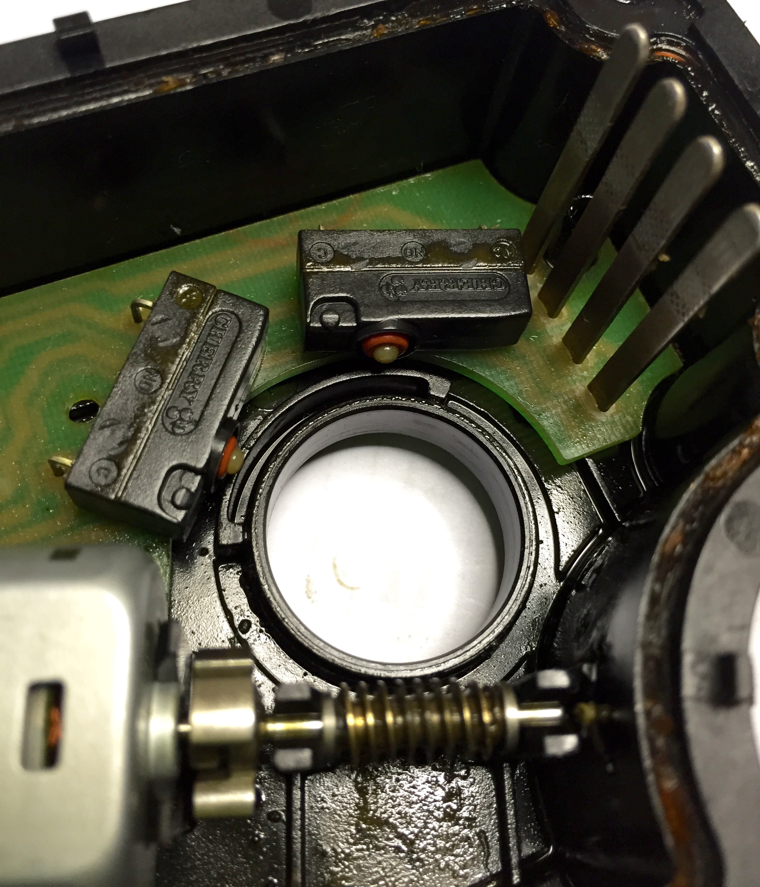 Rozebral jsem, zkouknul a všechno se tvářilo v pořádku. Když jsem ho zkoušel na stole, zjistil jsem, že problém je v tom, že když se otáčí vačka, tak po desátým bezproblémovým zastavení se najednou zastaví tak, že stopne jeden mikrospínač, ale setrvačností dojede až k druhýmu a ten taky sepne. Tím pádem při dalším povelu k návratu (reverzní chod motorku) jen cvakne relátko a nic se netočí, dokud se vačka ručně nevrátí jen na jeden sepnutej kontakt. Ta vačka dělá půlotáčku mezi mikrospínačema tou delší, venkovní cestou.