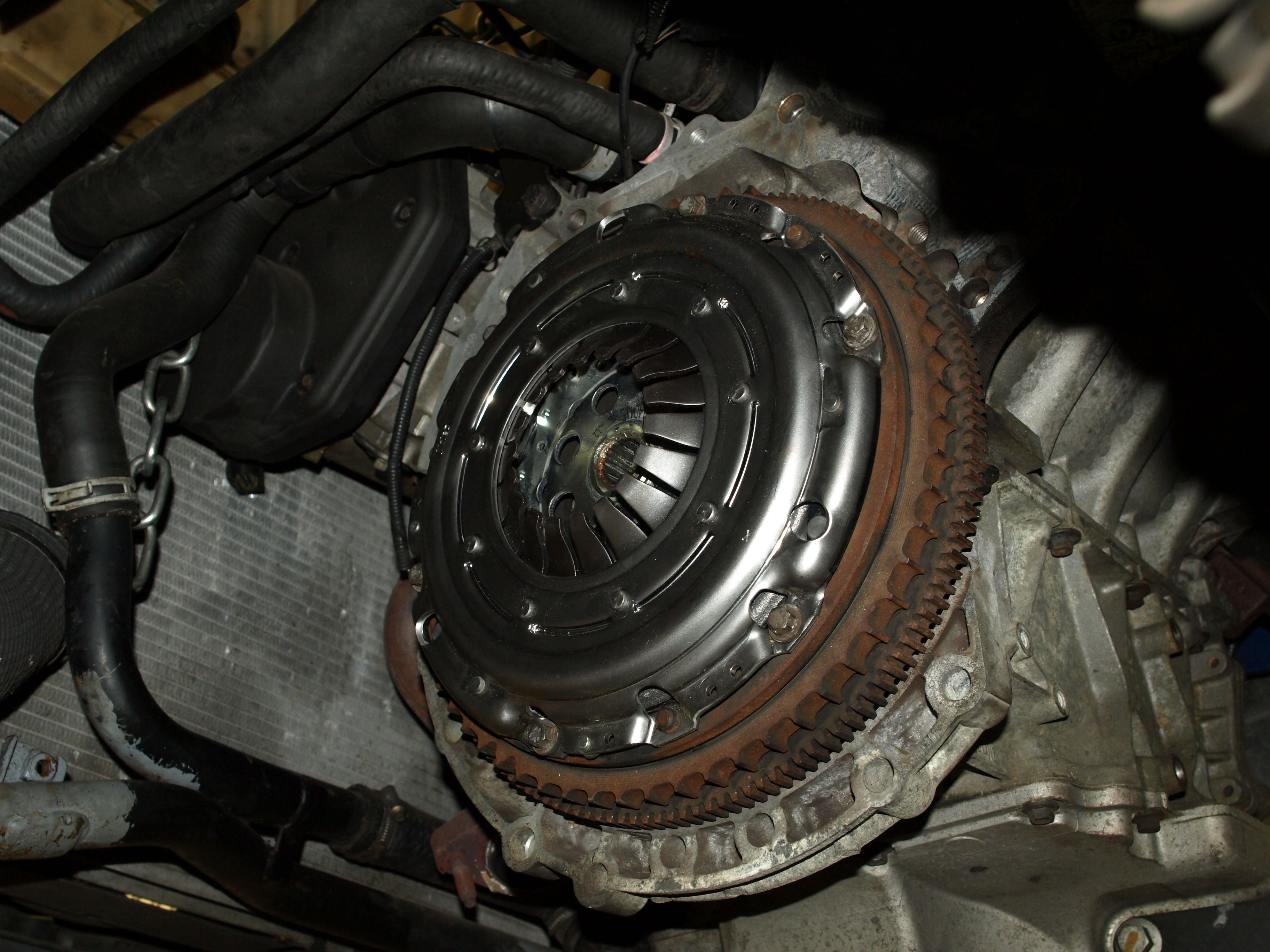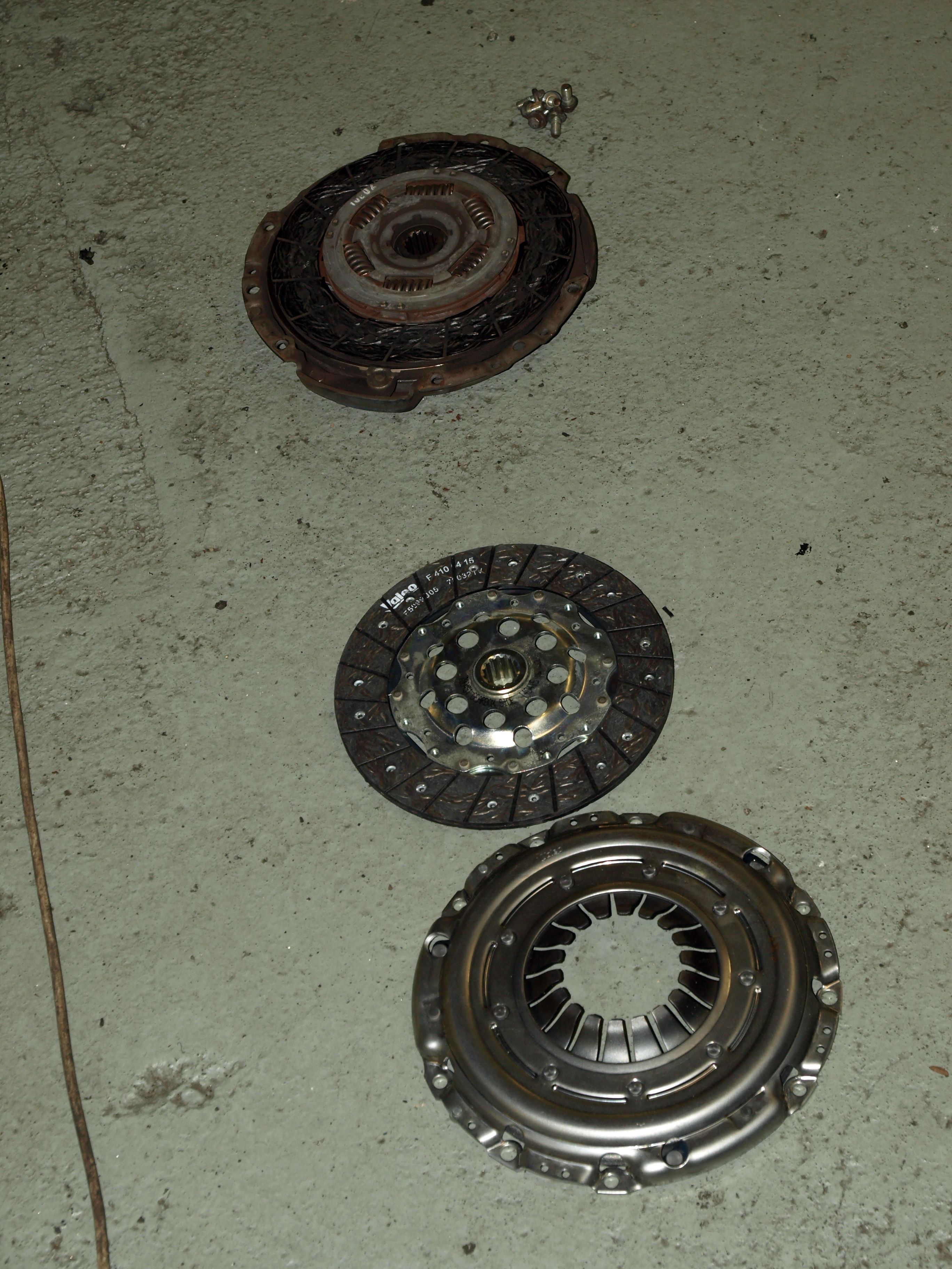 Převodovka dole - jak gufero na klice, tak na vstupu převodovky, oboje suché. Ani na ložisku nebyla žádná vlhkost. V talíři spojky byly hodně volné pružinky, takže nad výměnou spojky nebylo třeba spekulovat. Tohle mi mohlo způsobovat občasné chrastivé zvuky při studeném motoru. No a dvouhmota... jako nic viditelně a citelně zlého na ní nebylo. Proti náhradní (jeté) dvouhmotě tam byl mírně větší rozptyl v pootočení středu, ale po vychladnutí ten rozdíl byl minimální. Každopádně dvouhmota se prohodila, nová spojková sada (talíř už bez pružinek - hurá, konečně přišli na to, že to bylo zbytečné kurvítko
