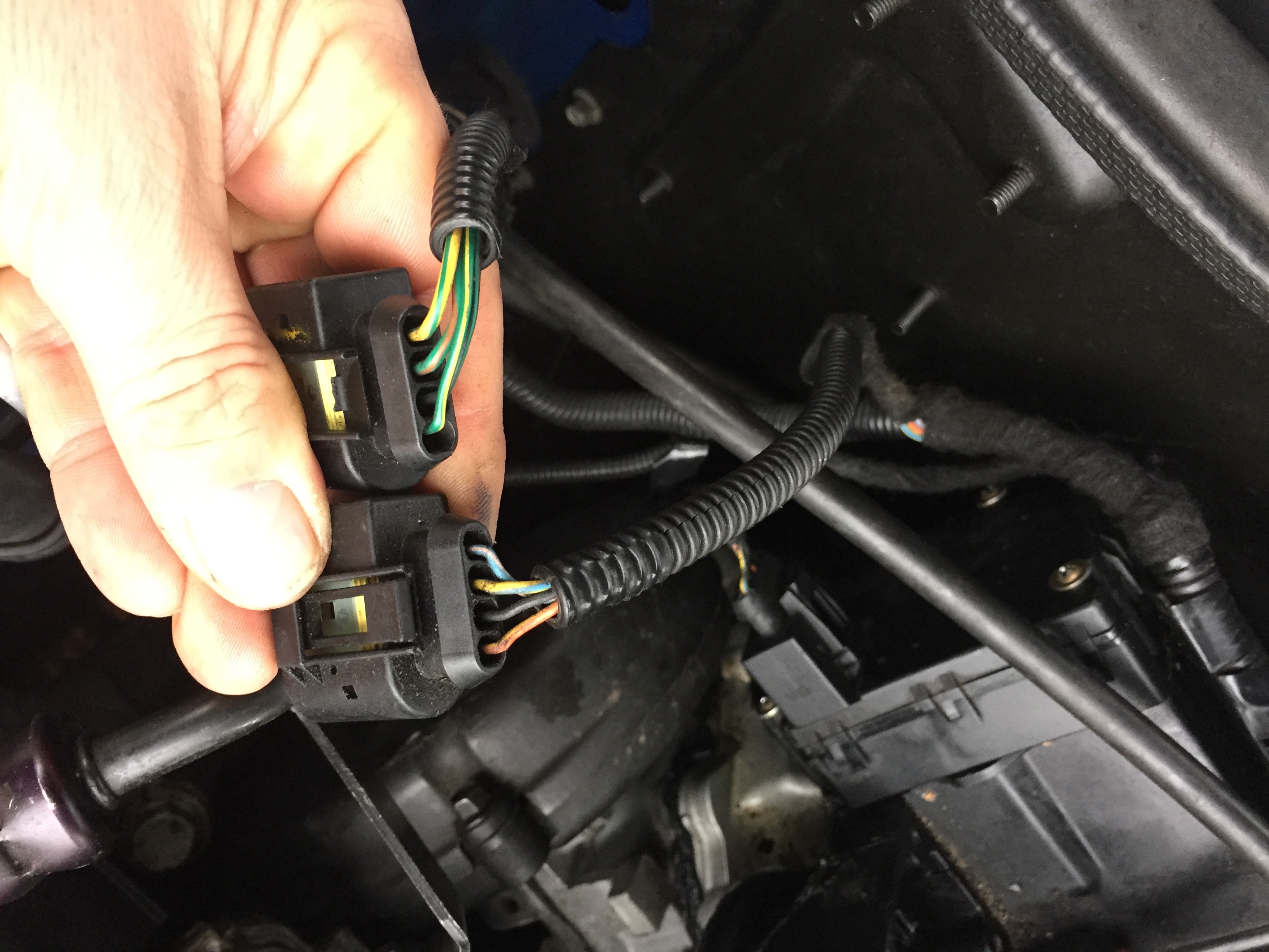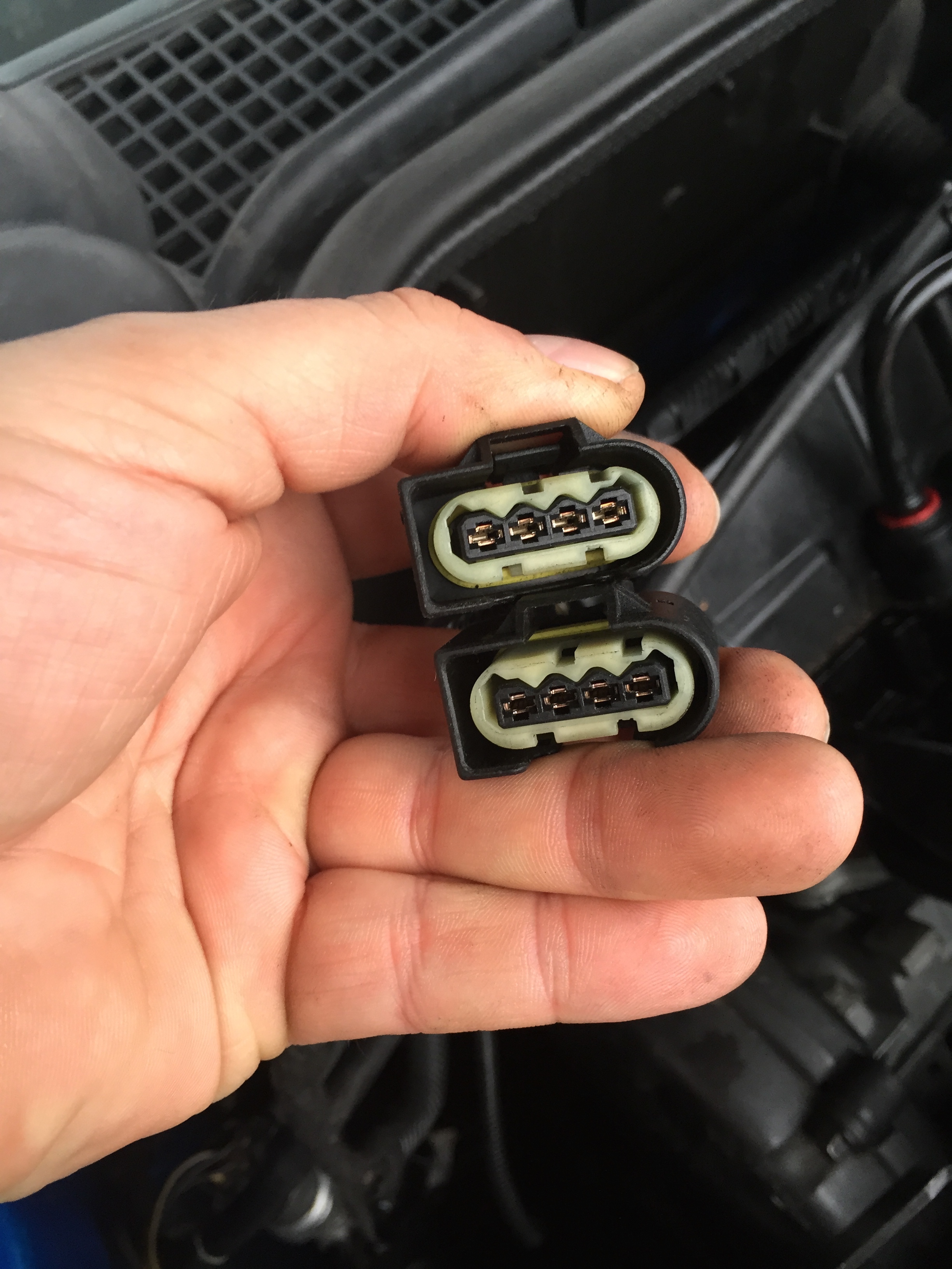 Řeším VIS motorky na sání. Klapky byly vyrabovaný, tak jsem sehnal jiný sání a horní motorek co ovládá klapky v potrubí se točil pořád dokola, jako kdyby nešly koncáky. Všechno proměřený - všechno v pořádku... Na stole na externím zdroji maká jak má, zastavuje na koncákách, v autě kolotoč. Lenham tvrdí že prej to není možný... Na webu jsem naěel popis konektorů s barvama drátů, tak to na autě kontroluju a nějak mi nesedí barvy. Tak koukám kolem sání a na blatníku druhej konektor, pokračování někam dolů za motor a na něm kupodivu ty správný barvy co mají bejt na VIS motorku. Samozřejmě - oba konektory identický a ten kundil (sorry, chtěl jsem napsat kutil ale uklep jsem se) co to opravoval to prohodil. Fotky přikládám. Nevíte někdo kam ten na blatníku vede? Páč něco dalšího v tom autě tím pádem bylo taky blbě zapojený... Neměl jsem čas to teď zkoumat.