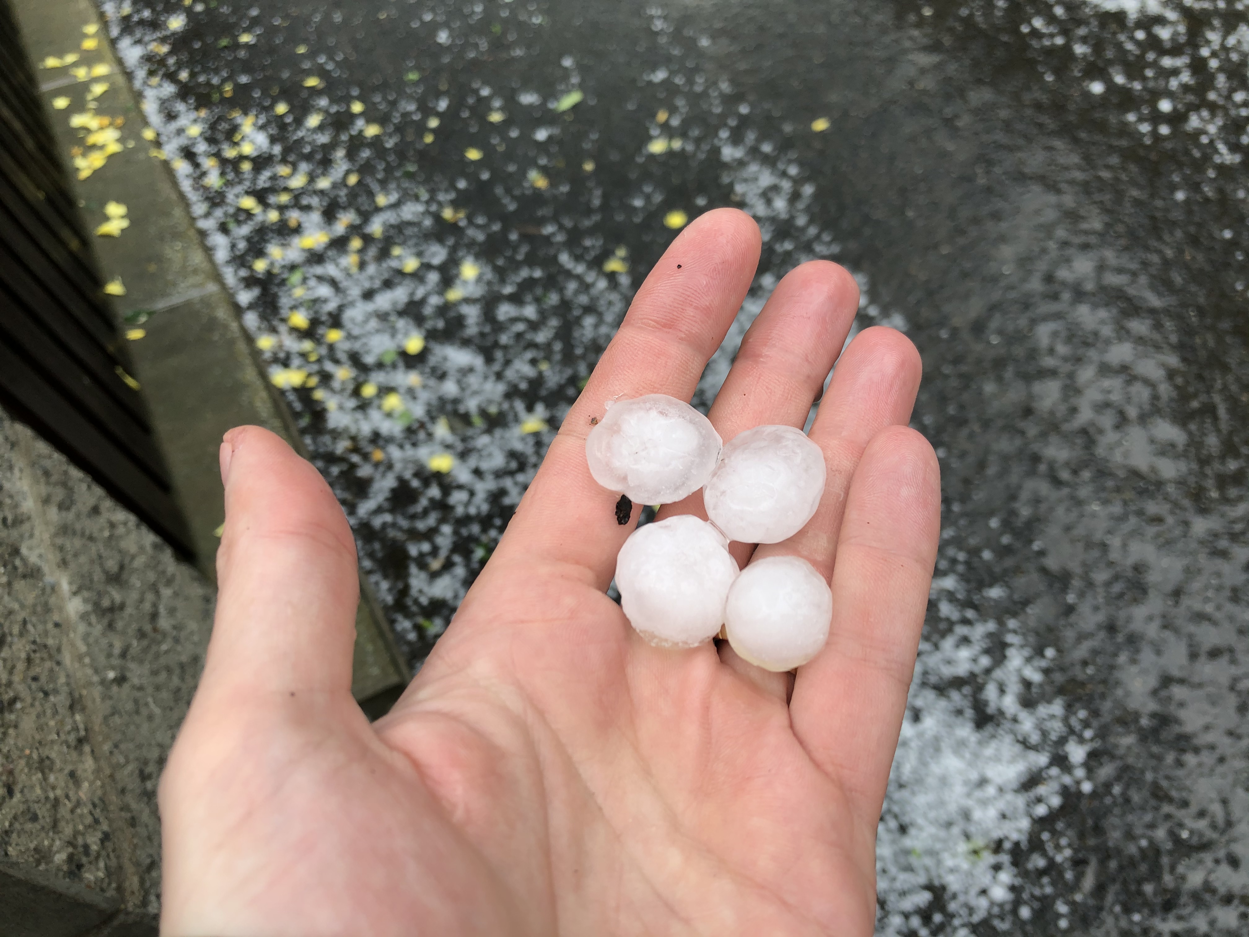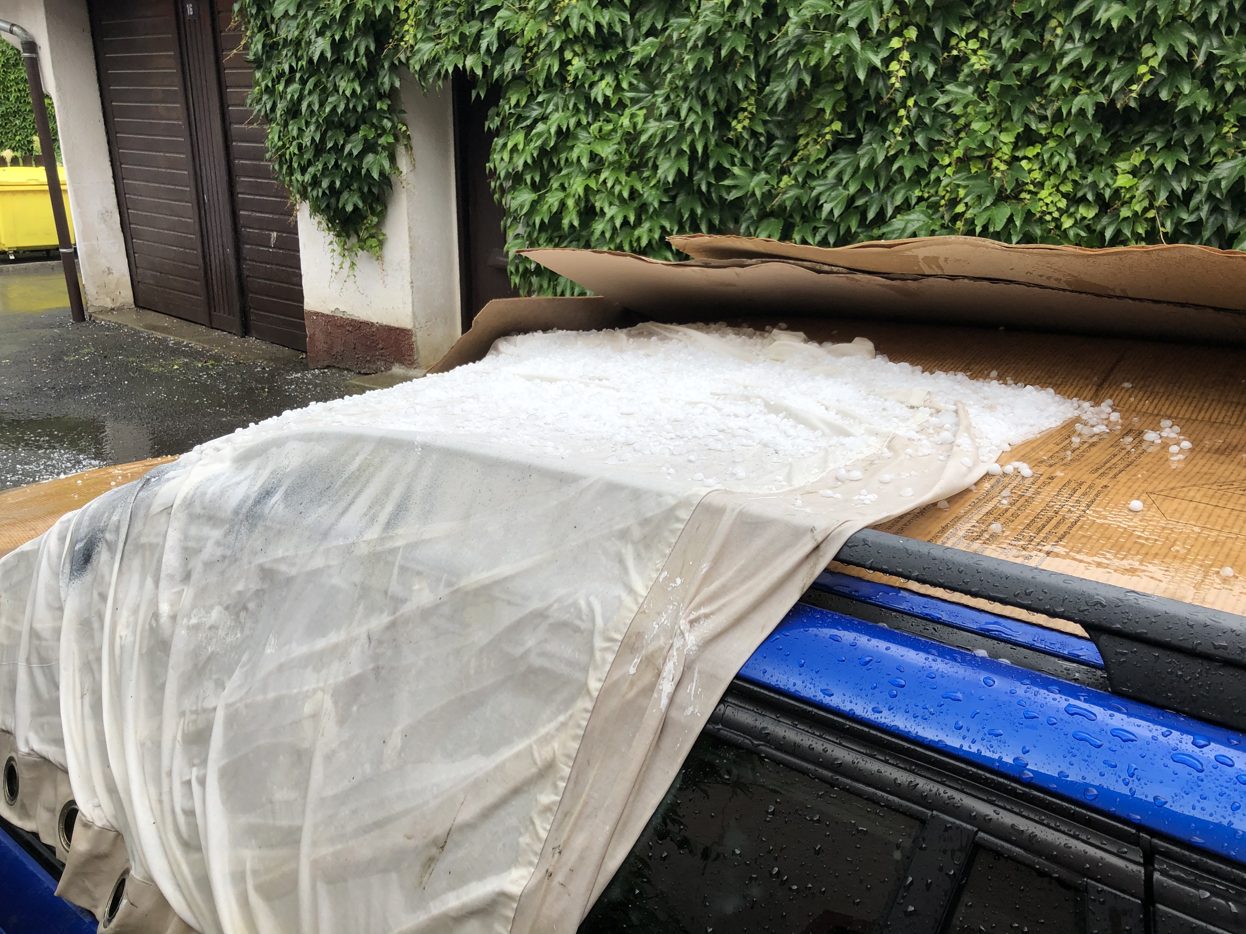Jo tohle uz jsou docela velky kroupy. Z mych spise pocitovych vedomosti, je tohle tak ta velikost, kde se to lame mezi tim, ze to (stranou uplne papiraku) nic jeste neudela a ze uz to muze neco i zpusobit. Byt o neco mensi, tak bych se ani moc nebal bez prikryti, Byt ale o neco malo mensi, tak uz se bojim fest.