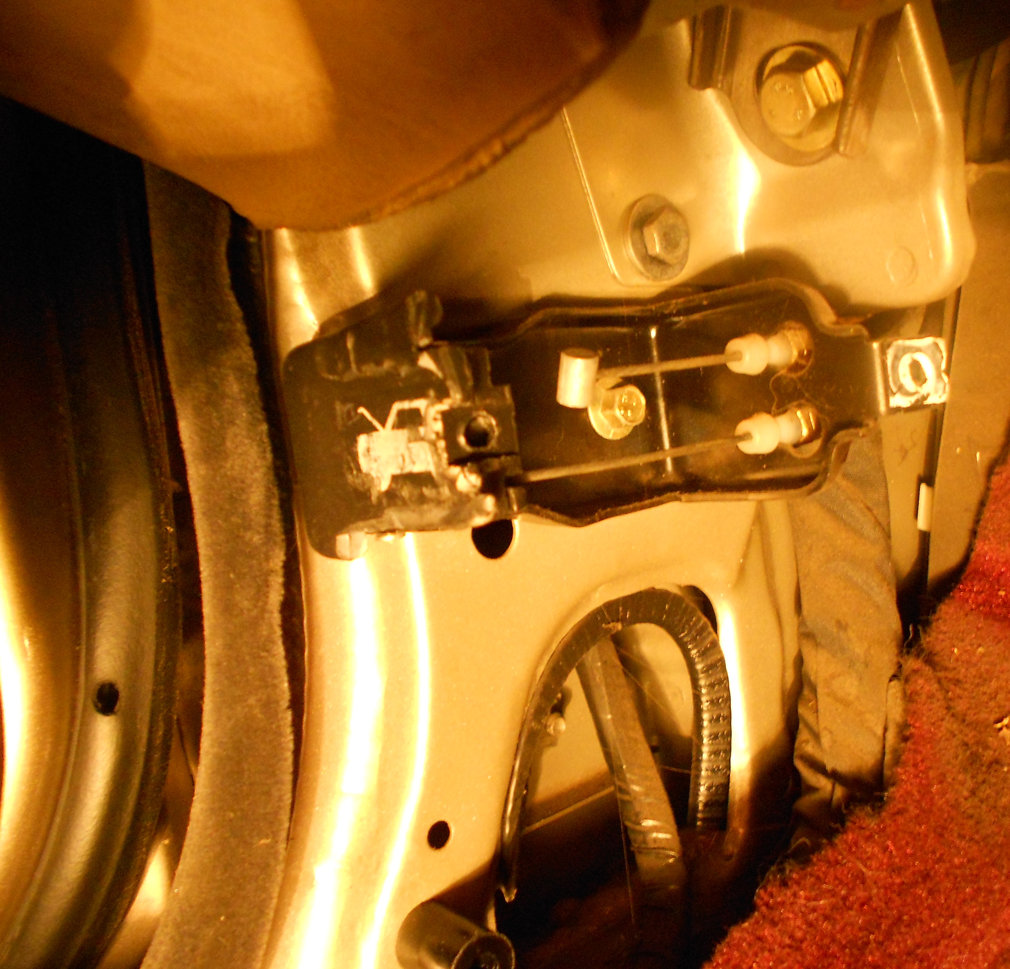svátky za náma, hromada chlastu za mnou a po dlouhý době jsem se zase dostal k autu, momentálně jsem to zkusil z interiéru, odšrouboval jsem ten kryt na ty táhla a hle, trefa do černýho, budu muset objednat nový kus, někdo prede mnou už to lepil a zas se to ulomilo, na pár dnů to zkusím přilepit, snad to chvílku vydrži, když si zvpomenu, že jsem chtěl vylámat mřížku abych se pod tu kapotu nějak dostal, hrůza, moc děkuju za rady
