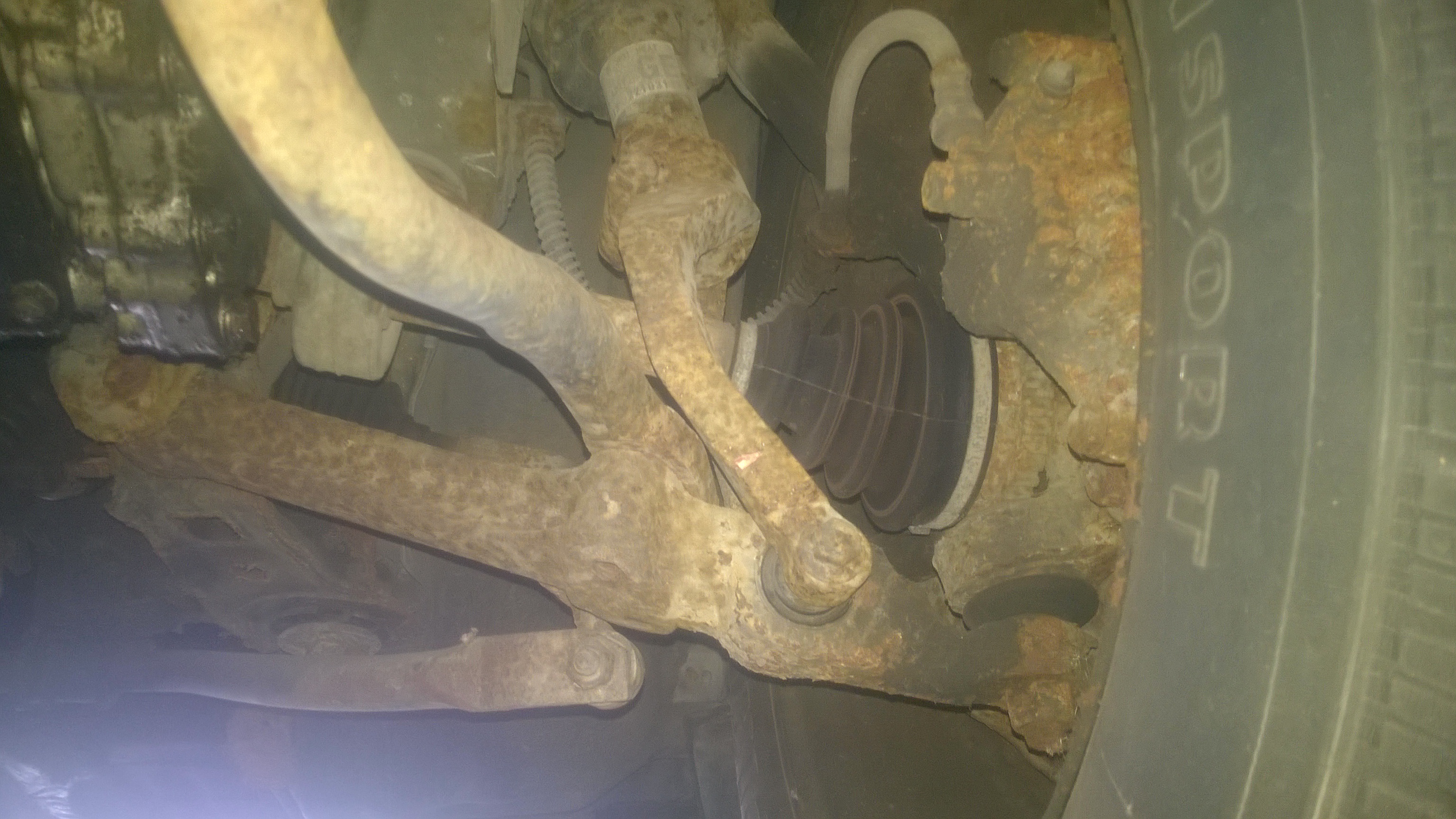 .. Zatím je diagnóza - komplet výfuk vč. katu po smrti.. (ten je i z venku uplně černej-asi v něm hořelo), komplet brzdy vč. ručky v kopru, z auta cestou na podválu vytekla všechna voda - prorezlý vodní chladič ve stylu, že nahoře zůstala kostra a vyhnil vnitřek, z motoru jsem vypustil místo 6,5L olejové náplně cca 9L smetany, voda z auta tekla i směrem zezhora od hlav, dále težký únik ATF z převodovky (což bude pro mě paradoxně nejmenší problém), zarazila mě i docela velké koroze spodku.. nefunkční mechanický zámek u řidiče (u spolujezdce je jen záslepka)-děsím se chvíle, kdy mi odejde klíčenka.. víc budu vědět, až sundám hlavy.. snad nebude někde prasklina..