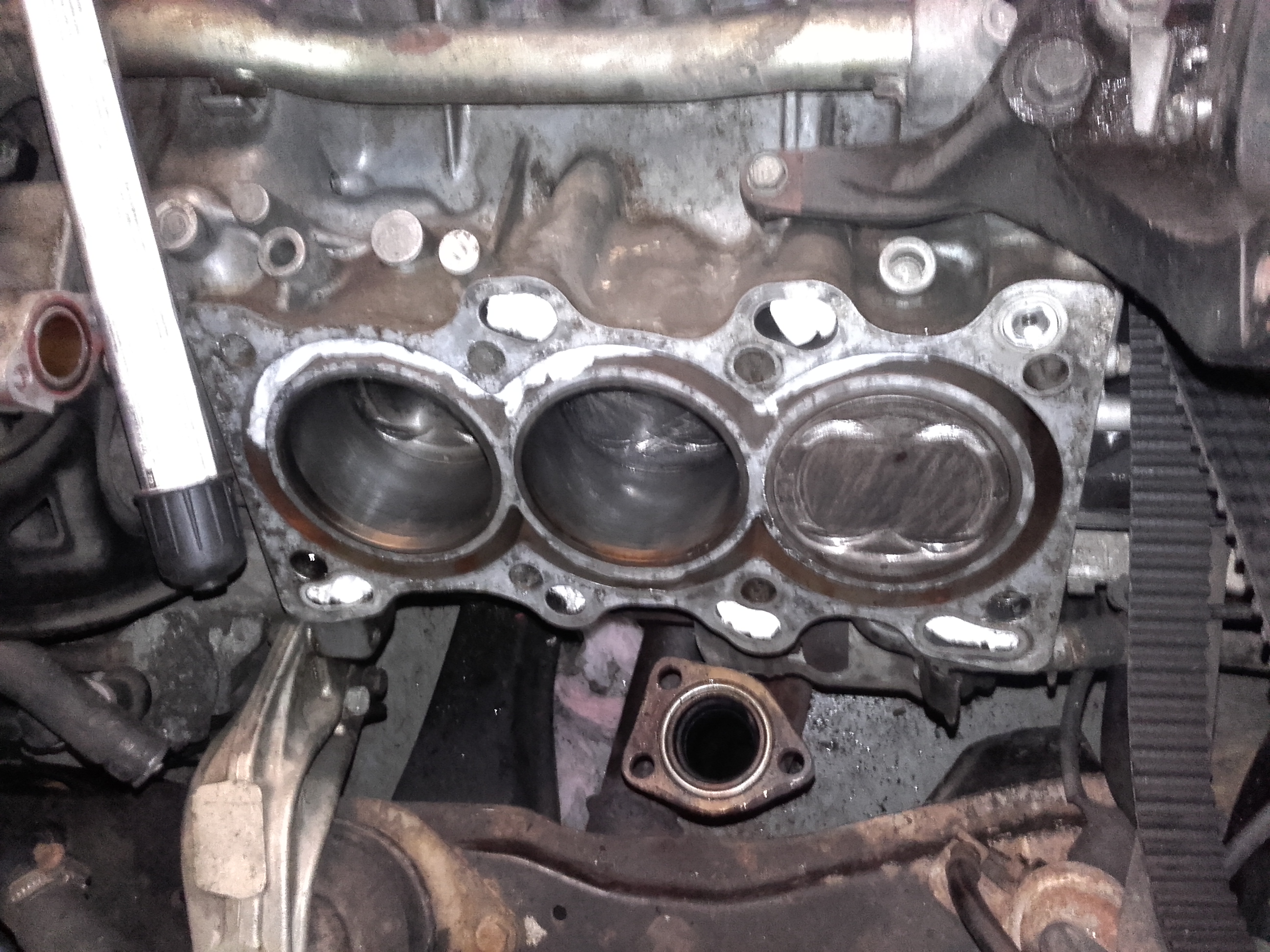 udělal jsem si trochu času a motor jsem rozebral, tedy částečně, sundal jsem 1 hlavu motoru, kde byl problém. Problém byl v kvalitě těsnění. Původní obavy, že oprava jednoho válce motoru nevydržela se naštěstí nepotvrdila. Při demontáži hlavy vznikl, ale nový problém a sice, že jeden šroub hlavy byl vytočen i se závitovou vložkou, která již byla poškozena dříve a tedy šroub hlavy nebyl vůbec dotažen. Přesto to nemělo vliv na těsnost válce, těsnění povolilo na jiném válci, kde byly šrouby dotaženy. Prostě jsem měl smůlu na kvalitu těsnění. Závit půjde opravit pomocí speciální sady nářadí s novou závitovou vložkou o jedno číslo větší. Původní šroub závit M11 bude nahrazen šroubem M12. Jenom doufám, že při dotahování nepovolí další. Další dilema je, zda sundávat i druhou hlavu nebo ne, protože to by bylo lepší již celý agregát hned na začátku vyndat z auta, lépe by se to dělalo. Takto to bylo dost hustý. Dřív jsem to již takto taky někomu dělal, ale tenkrát mi to nepřišlo tak hrozný jako teď.