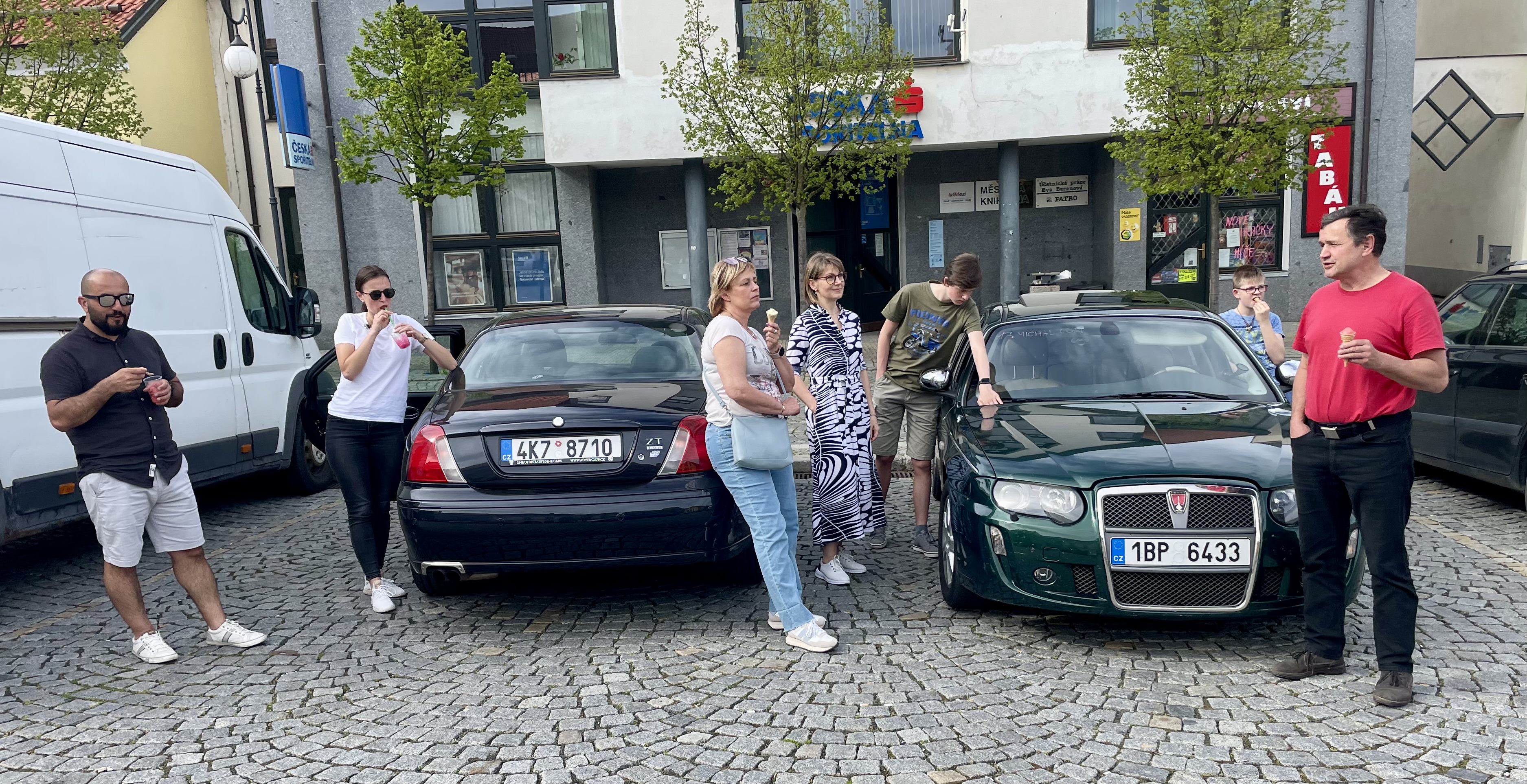 Nedělní cesta domů, kafe a zákusek v Březnici - a koho nepotkáme na náměstí při odjezdu - Venca ze Sokokova (i s rodinou), který se odpojil od srazu v sobotu a jel za příbuznými. Tady se stavili na zmrzku…