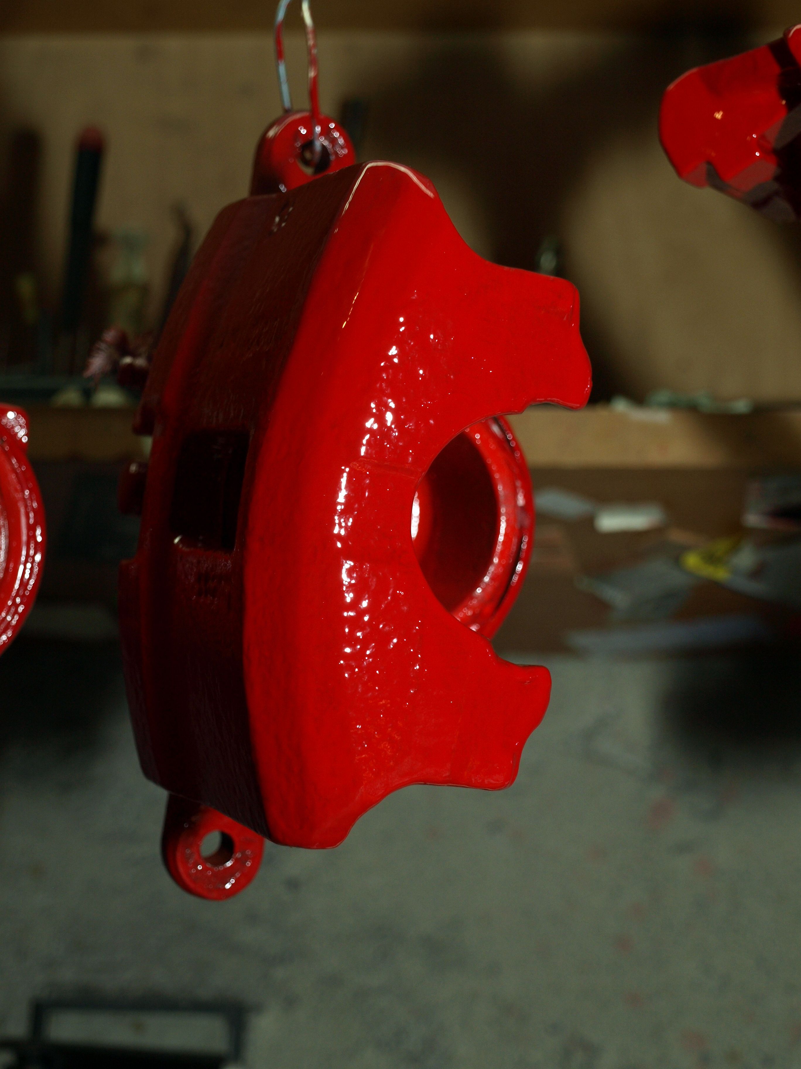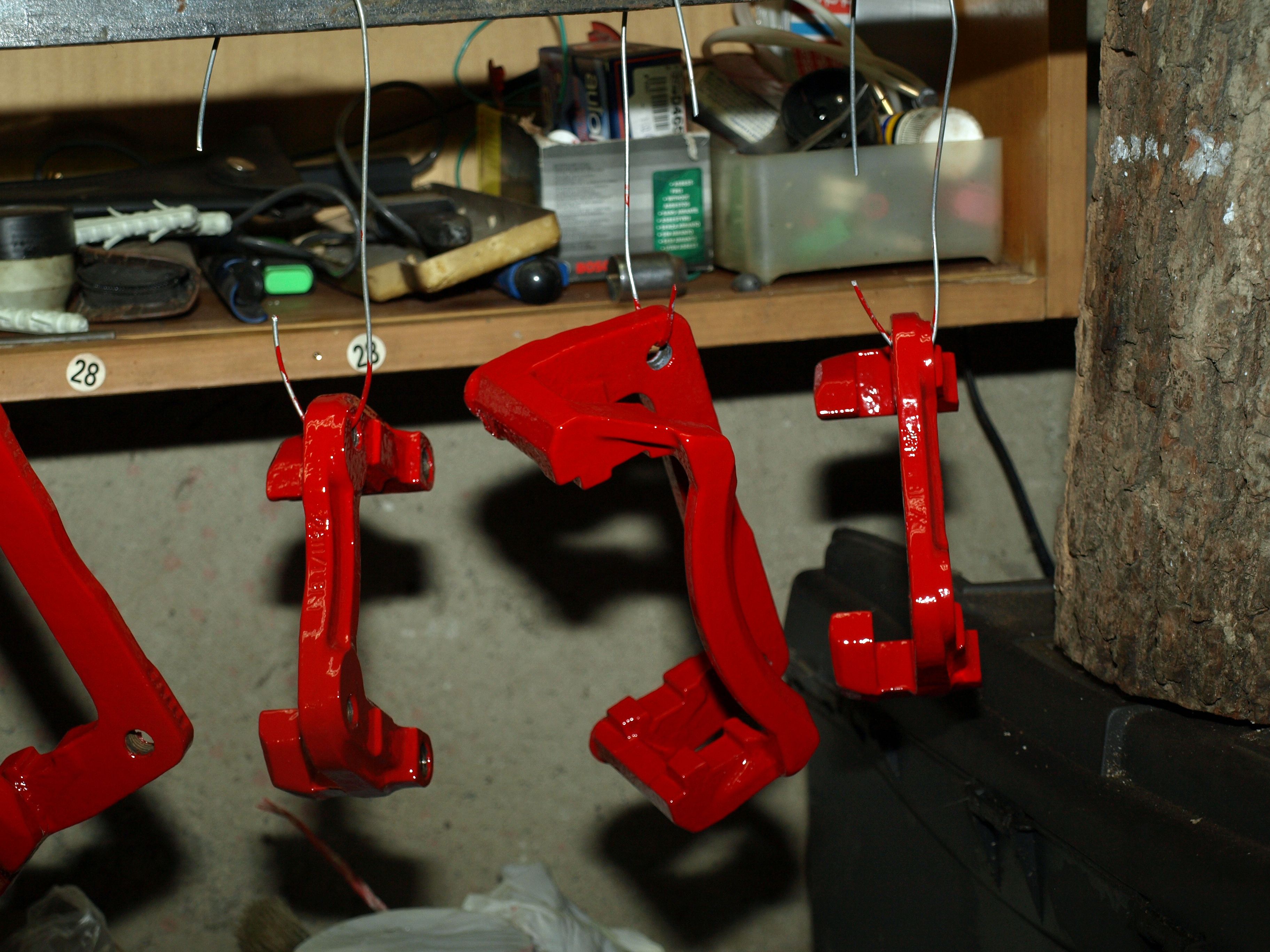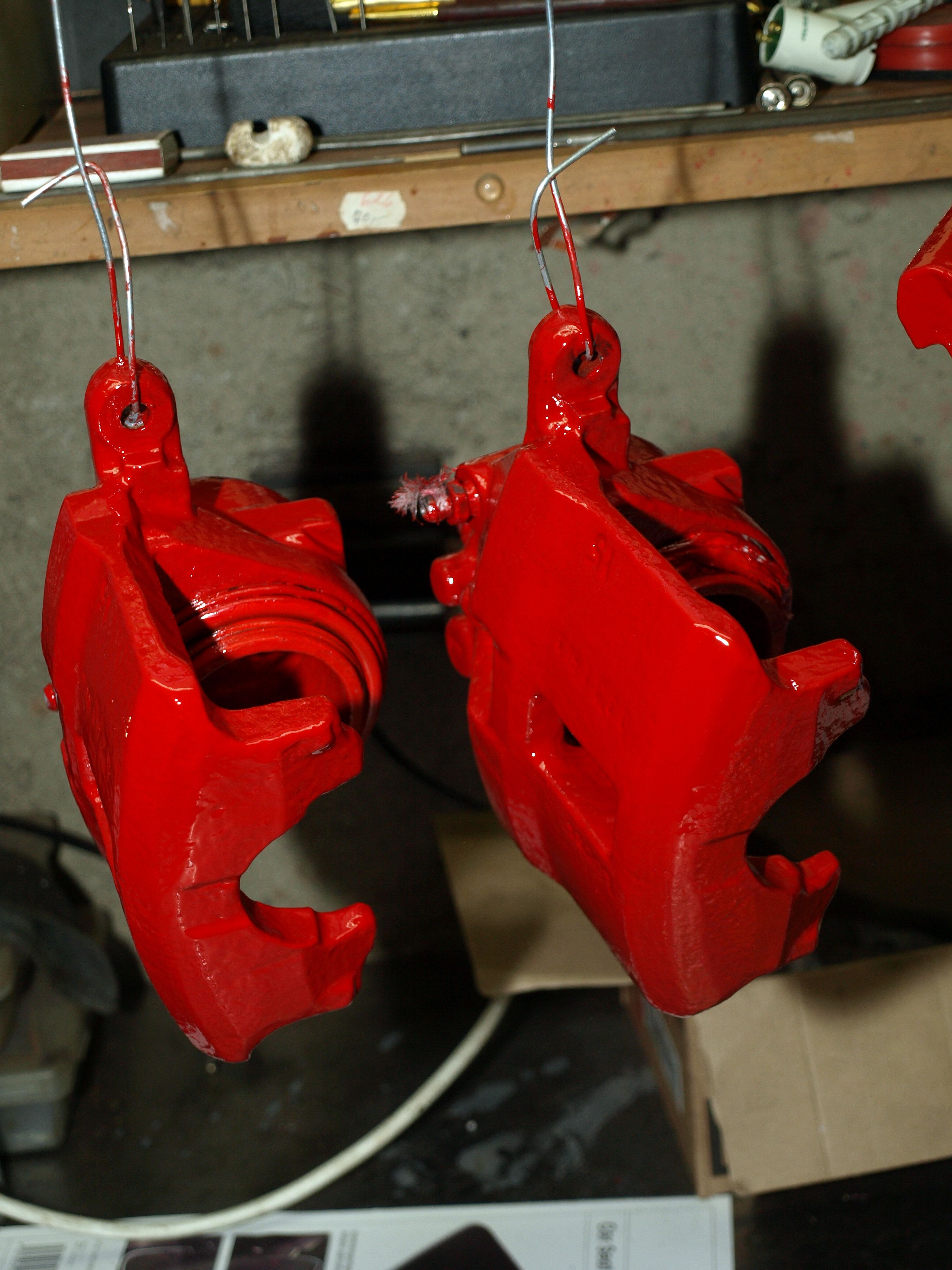 Je to celkem makačka, ale už to mám v podstatě hotové. Namíchal jsem asi 2/3 barvy a zbylo mi něco, tak jsem narychlo odmastil a odstrojil ten jeden zadní menší třmen a natřel ho taky... najím se a půjdu ho natřít po druhé