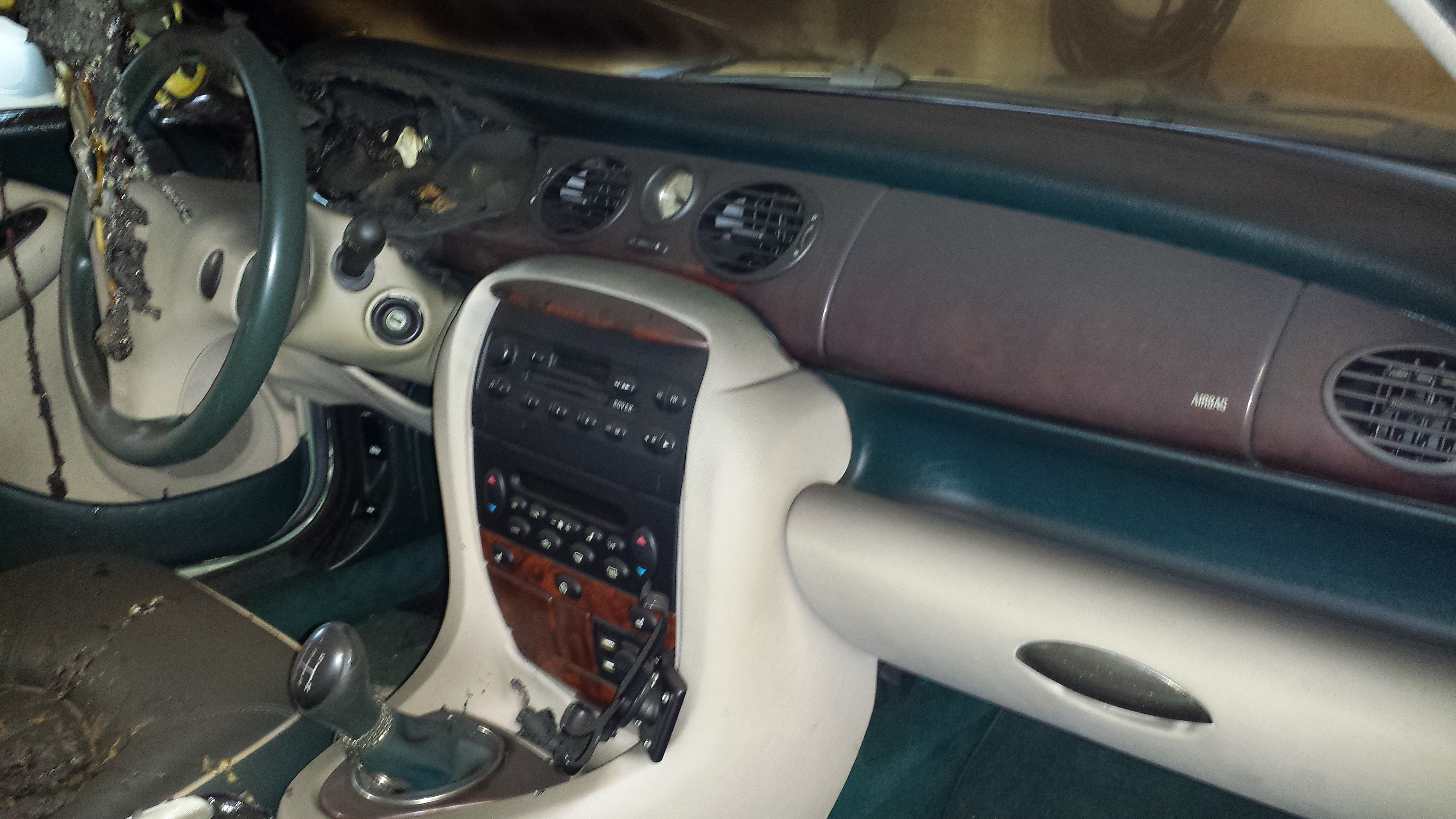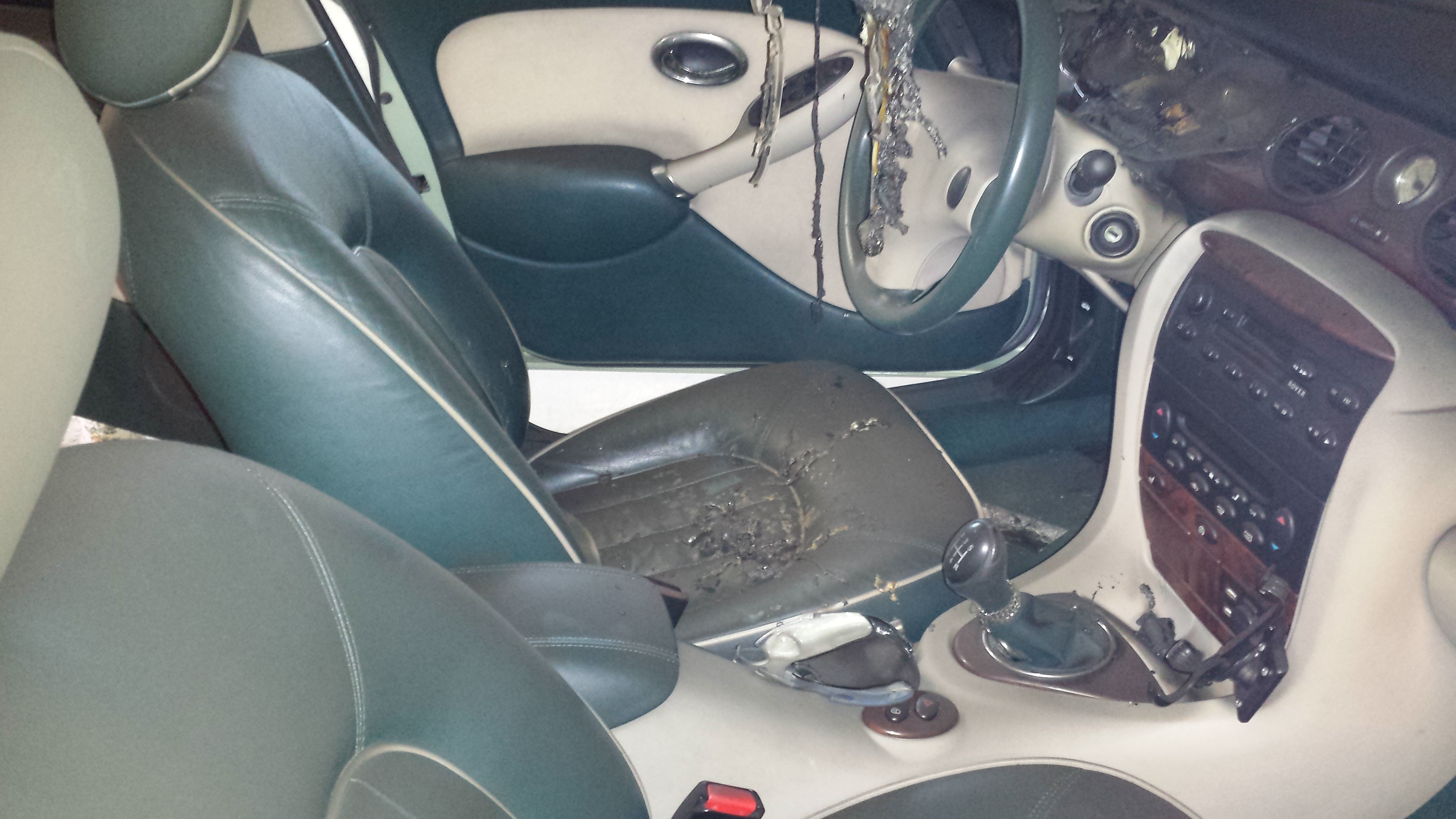 Běžně chodim do práce pěšky, včera jsem ale potřeboval jet autem, tak jsem přišel do garáže, otevřel vrata, otevřel dveře od auta a v tu chvíli mě polil pot a vlítly slzy do očí. Přední část interiéru shořela. Stropnice, clonítka, palubka, budíky jsou ohořelý, přední sklo prasklý, sedačka řidiče pokapaná tim jak to na ní teklo...