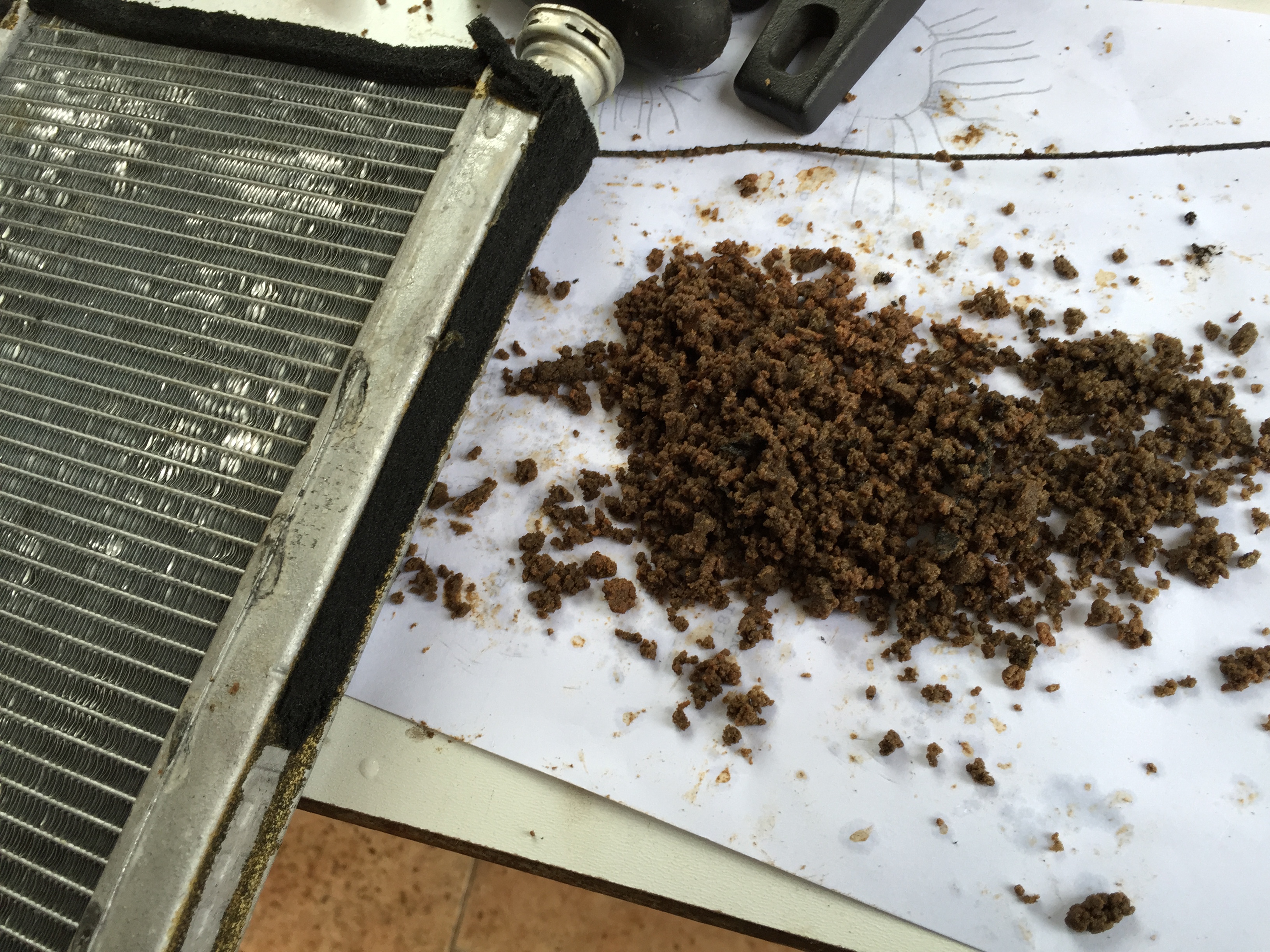 já si myslím, že kyselinka je na nic, vzhledem k tomu, že přítok i odtok je jen z jedné strany, to by se s tím muselo jezdit půl roku a i tak mám pochybnosti, že by se to uvolnilo . . . pokud se radiátor vytáhne, tak se musí mnohokrát proplachovat a přitom různě třepat a bouchat o dlaň, aby se ty nečistoty uvolnily