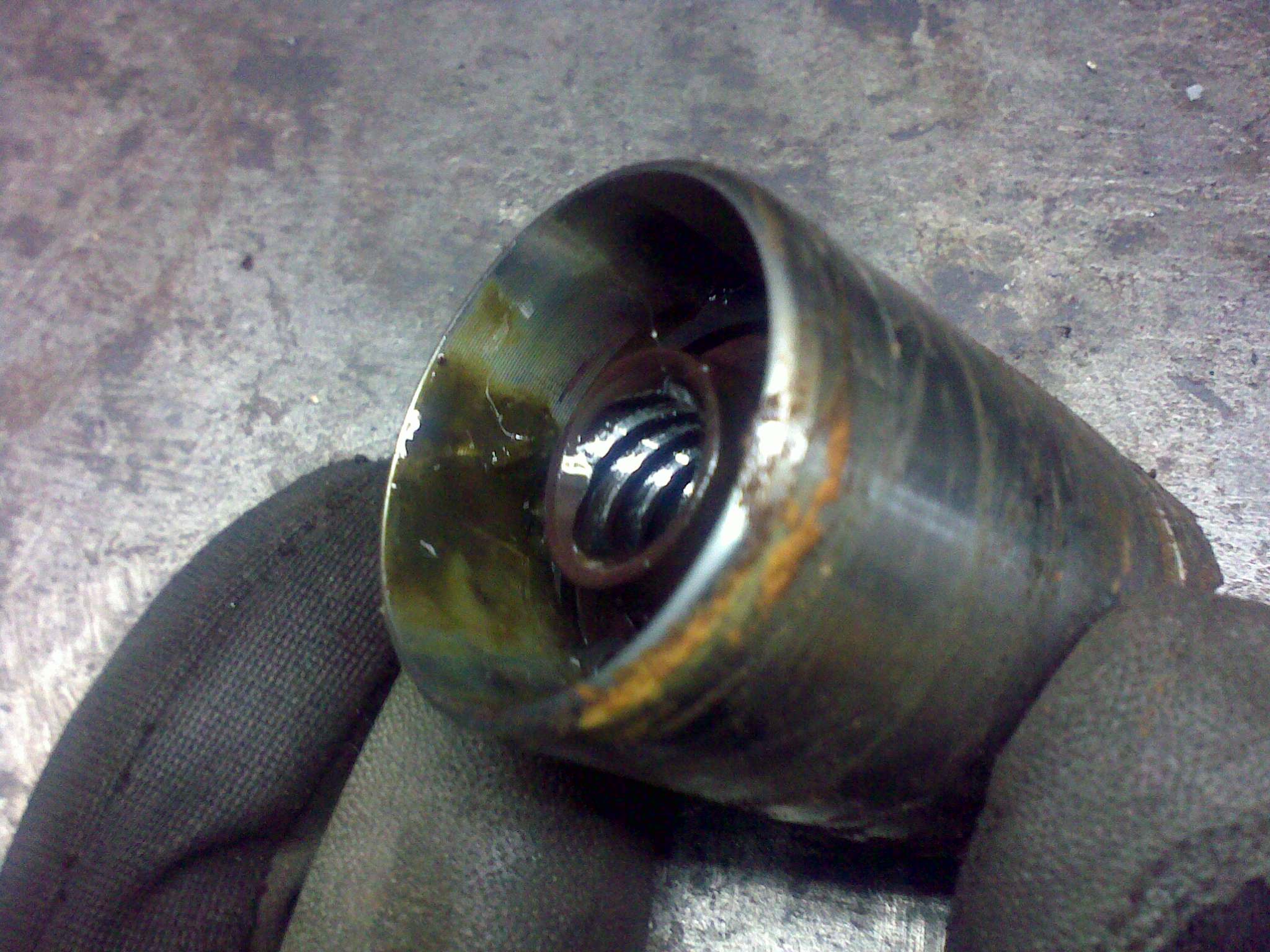 Přední nápravnici jsme zase demontovali, ještě asi o 1 cm víc vyřízli a převařili, takže teď už to drnčet fakt nemůže..... nesmí!