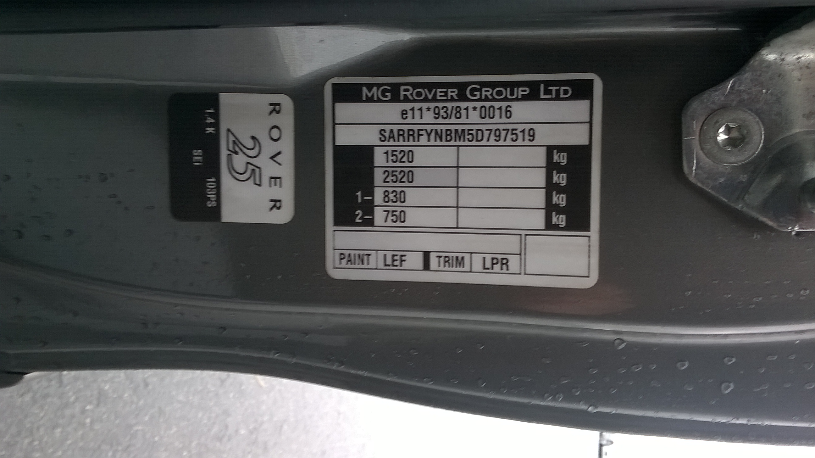 No, je to zajímavé, ale můj Rover 25 z roku 2001 má na štítku označení stejné ... e11*93/81*0016 ... kde to auto bylo registrováno? Můj je dovoz DE.