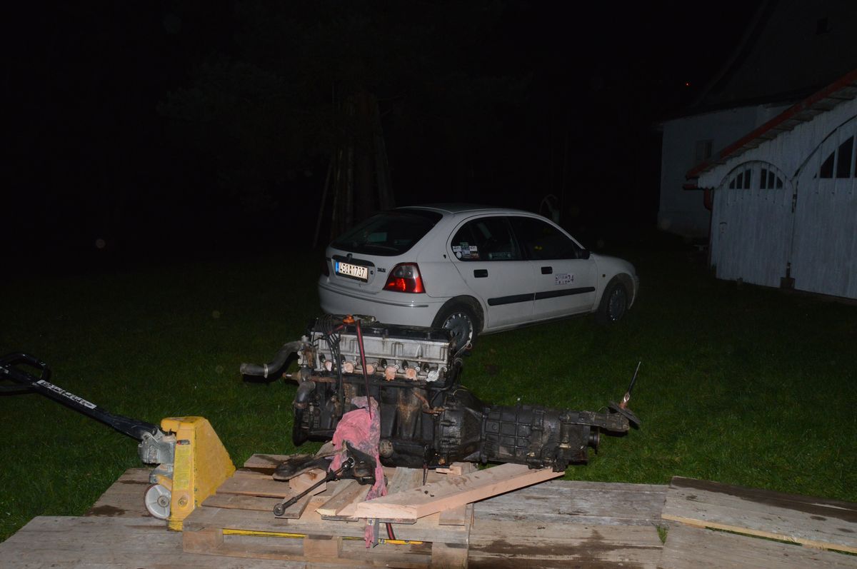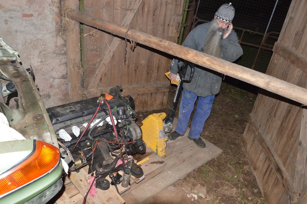 No dneska na to vytažení ze stodoly do garáže u dědy, už mám pozvaného tátu. Nějak se mi to nechce pokoušet tahat sám. Trasa, kterou má motor vykonat, není vůbec po rovině.
