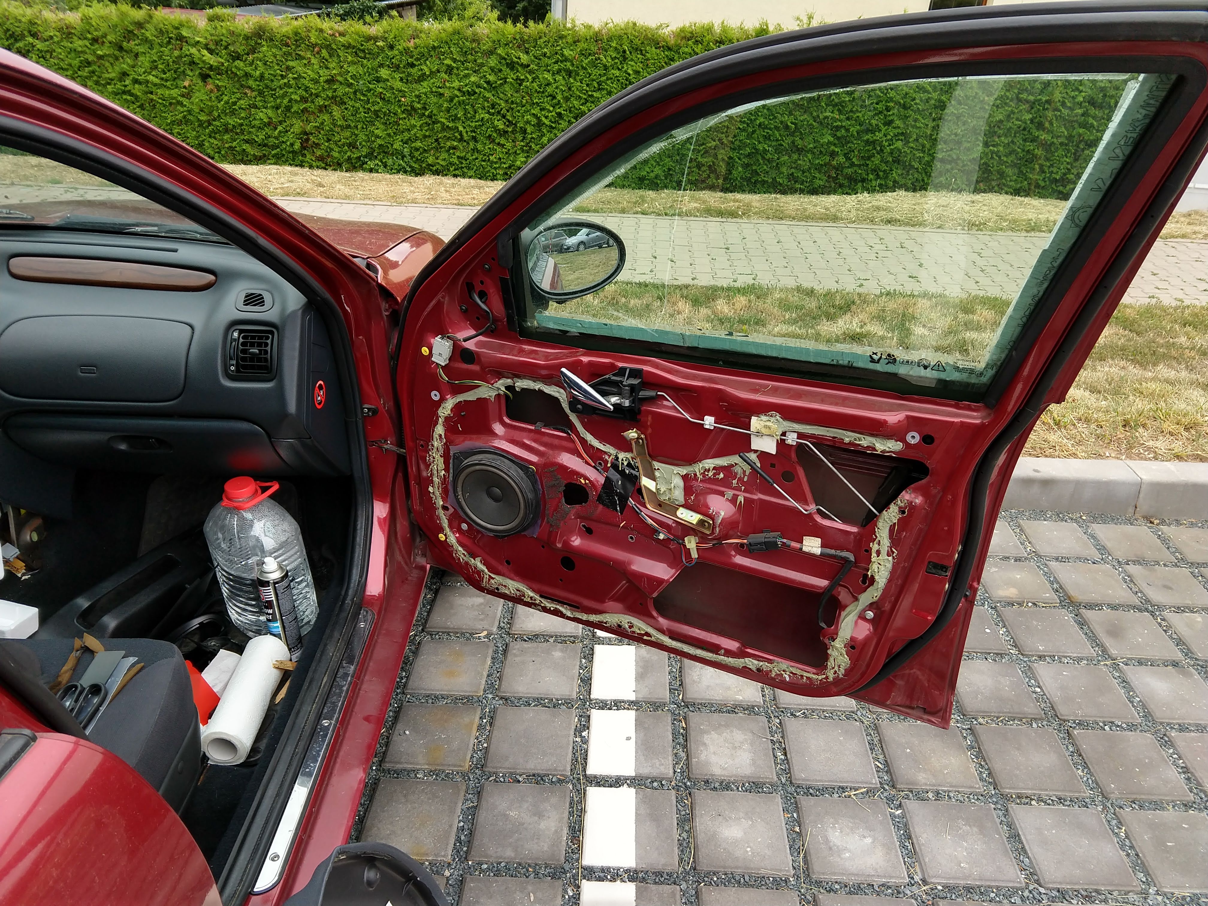 Dverim sem vyvoskoval spodni lem. a slepil natrzenou gumu od toho drivka co tam bylo a vymenil mrizku repraku za neposkozenou co mi zbyla jeste ze ZRa.