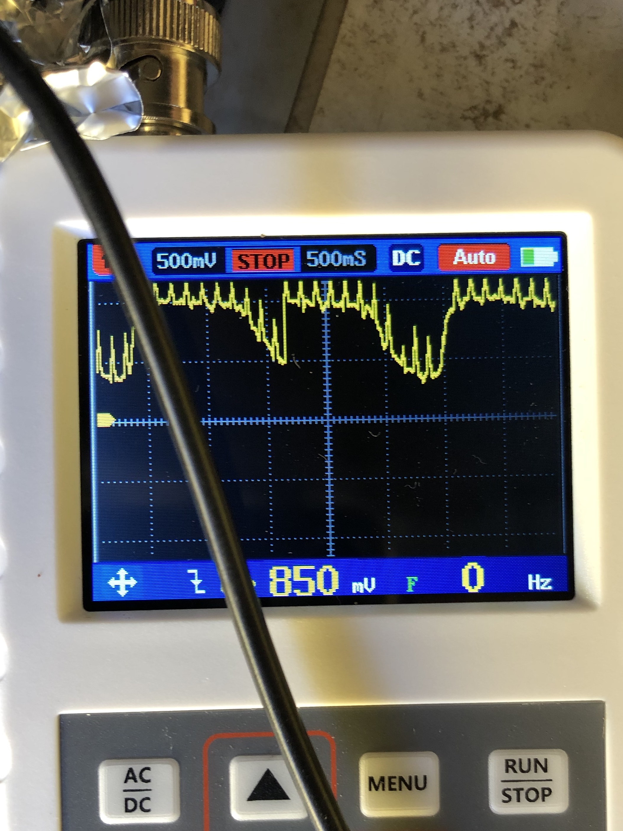 Namontoval jsem druhý první díl výfuku se sportovním katalyzátorem. Protože subjektivně jsem měl z této kombinace katalyzátoru a lambdy lepší pocit. A jelikož jsem si pořídil osciloskop, tak jsem schválně udělal porovnávací měření. A to můj pocit potvrdilo. Lambda sonda na origo díle vykazuje mírně horší hodnoty. Dávám sem foto oscilogramů:
