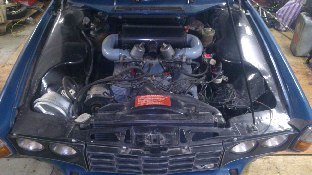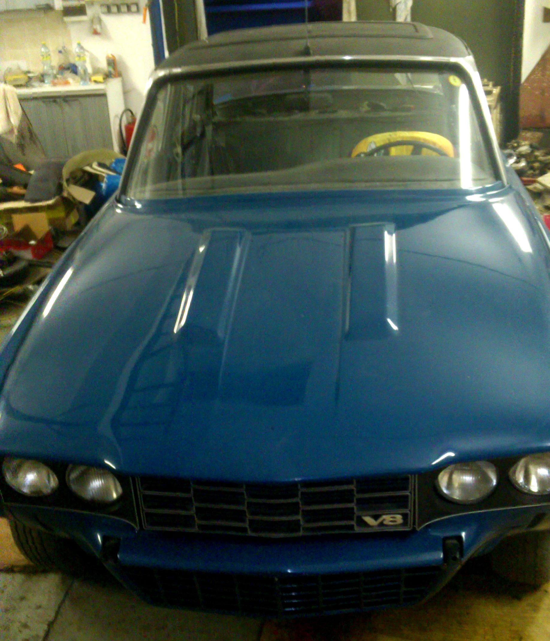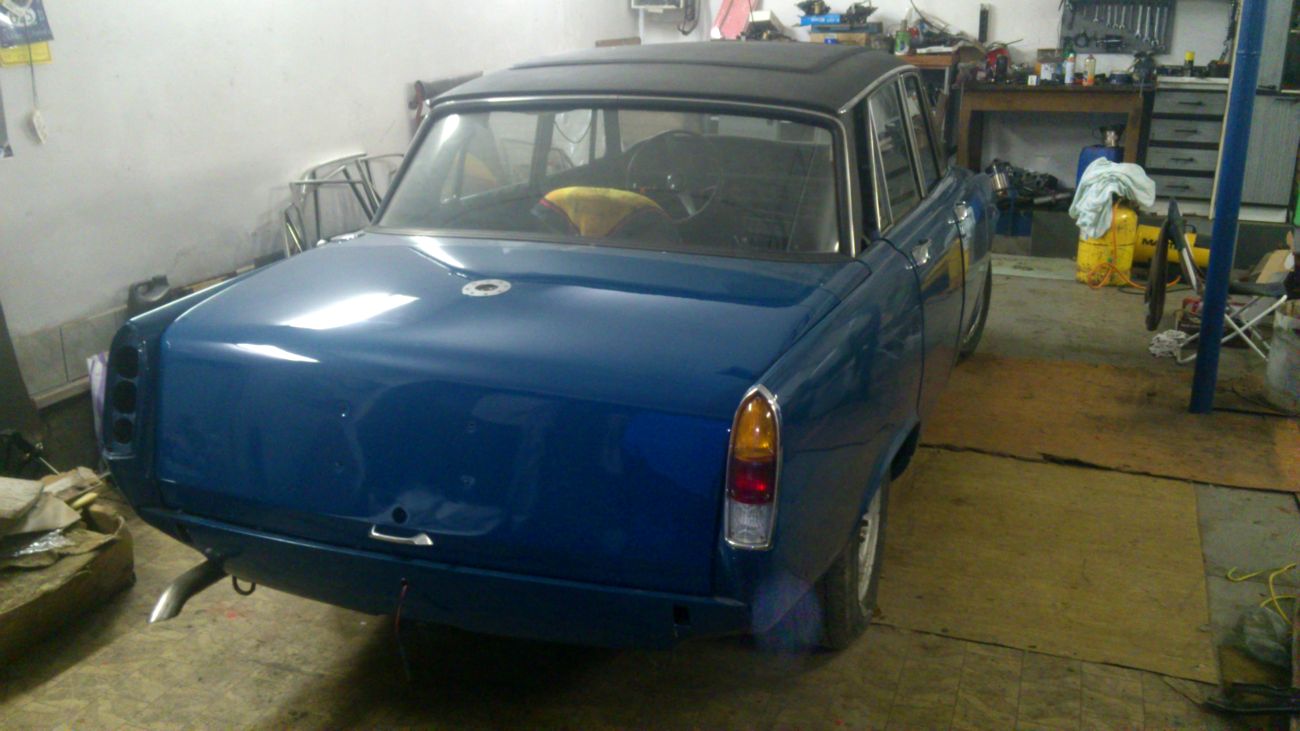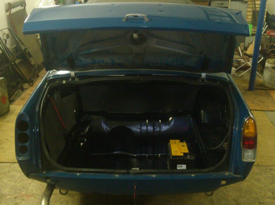 Tak jen nějaké info.... vnitřek vybrakován a natřen, je potřeba sehnat koberečky nebo je udělat, to samé je tapec na dveřích - uřezat papundekl a potáhnout bílou koženkou, horší to bude s madlama. Okna jsou ve dveřích usazeny, ale chybí prachovky - gumy. Kufr vytřena a to samé - nový kobereček. Po celém obvodě mi chybí ozdobné chrom.lišty. Některé věci se budou muset dovést z GB. Motor jde nahodit, studený hůř, teplej na drc, ale vidím to tak svíčky - seřídit ty dva karburátory SU a zapalování.
