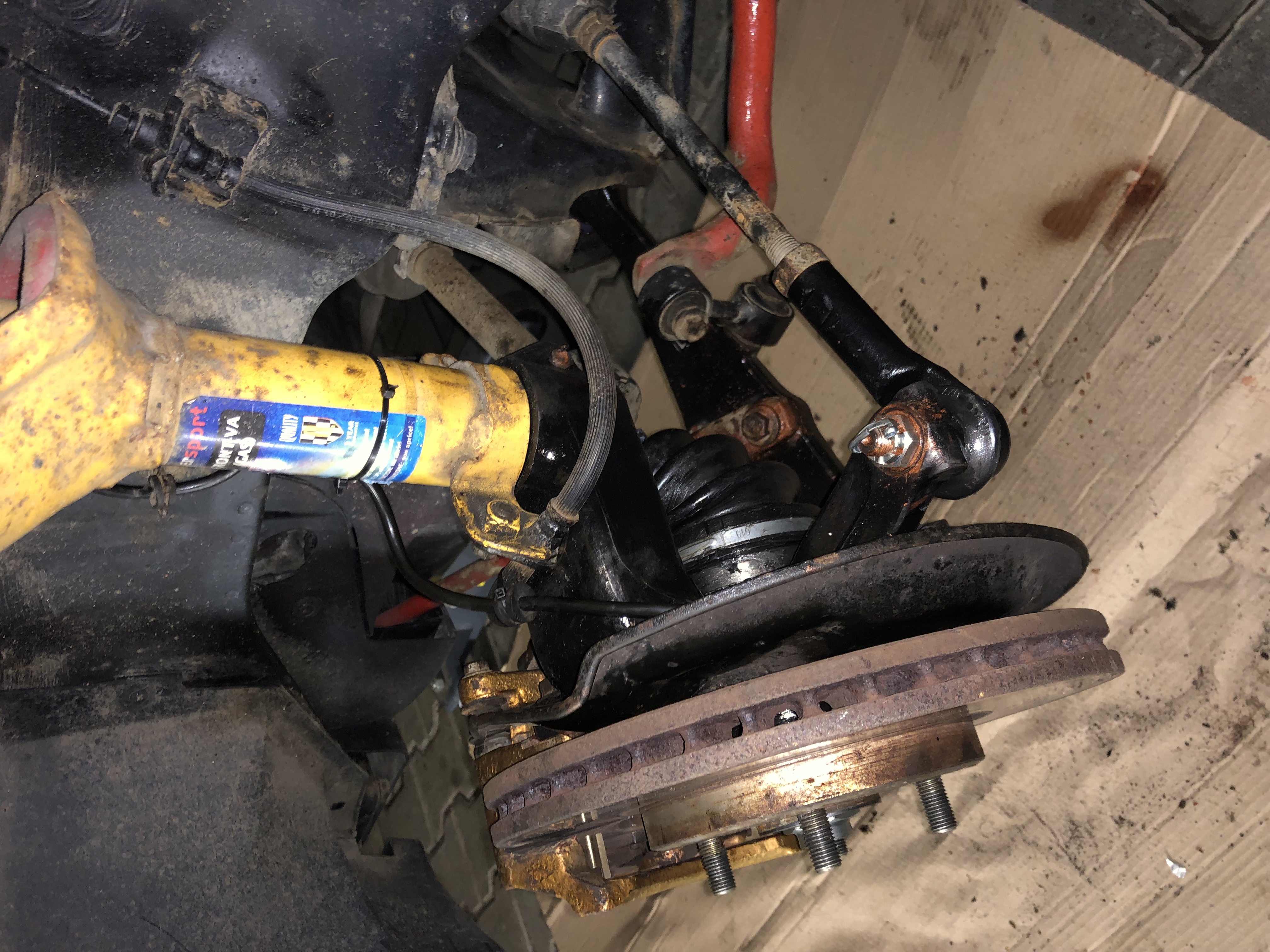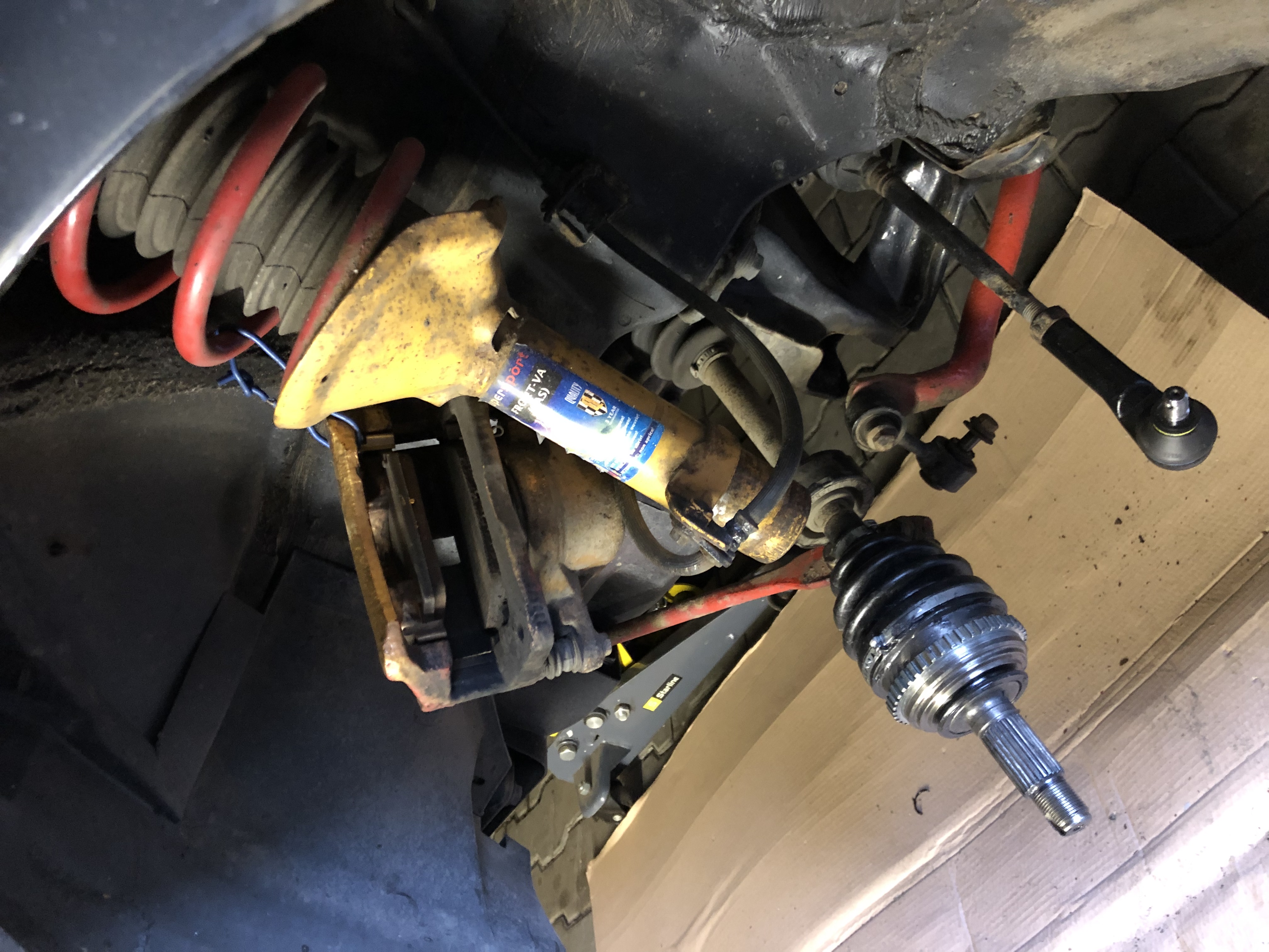 Takže všechno poskládat, trošku se pomordovat s ramenem, abych ho i s polyuretanovým silentblokem dostal do nápravnice, ale povedlo se. Jo a ještě jsem vyměnil čep řízení