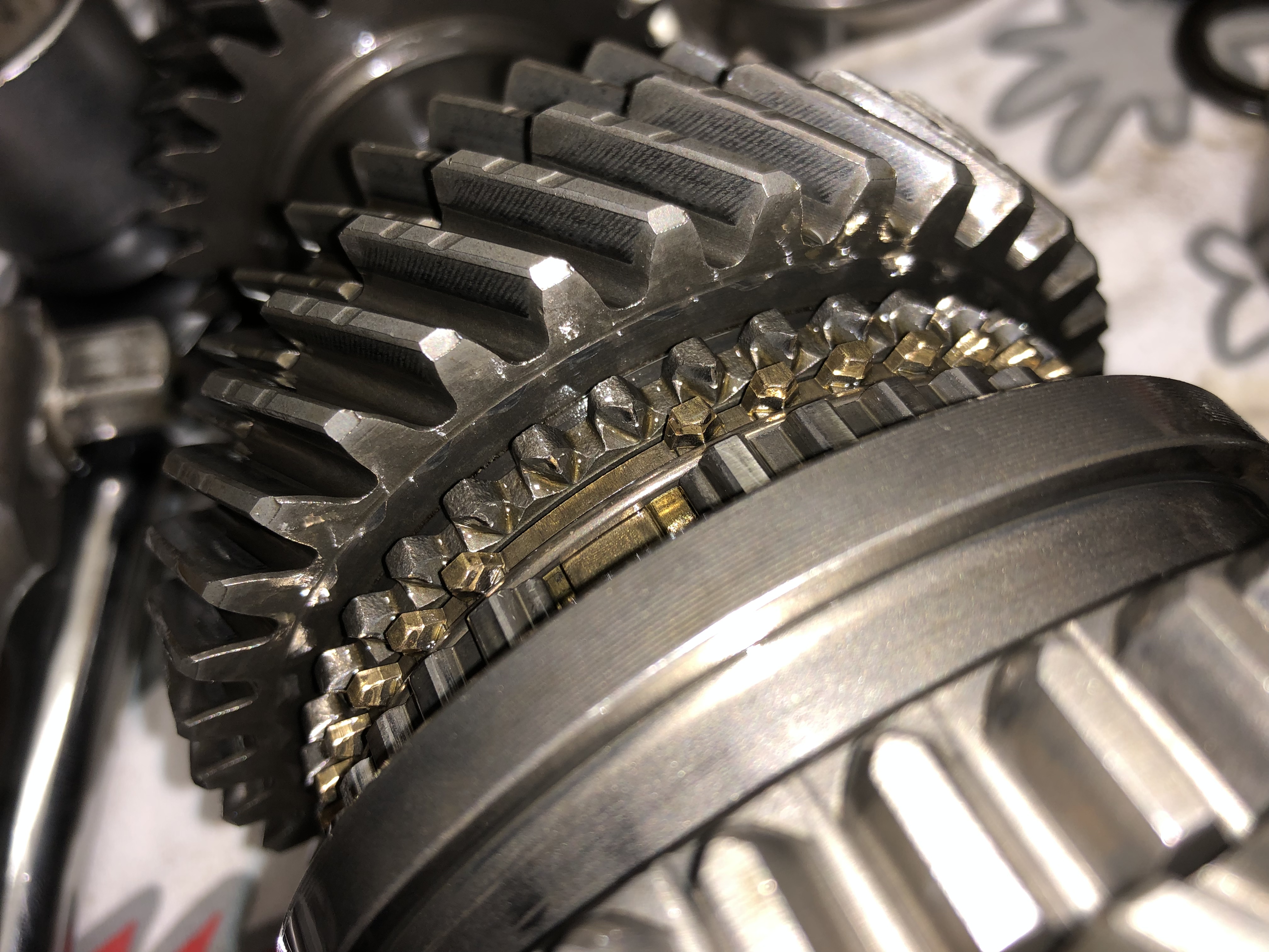 Změřil jsem spáru mezi 2. převodem a synchronem a byla cca 0,90 mm. Limit je dle manuálu 0,85 mm, tedy rozhodl jsem se tam strčit synchron z TIčka, který měl na svém převodu spáru cca 1,05 mm. Samozřejmě je to i o kuželu na převodu, takže výsledná spára nebyla tak dobrá, ale myslím něco mezi 0,95 a 1,00 mm, takže lepší. Samozřejmě musí si to sednout, zajet, ale zatím se mi nepodařilo při prudké akceleraci a rychlému zařazení z 1 na 2 dosáhnout onoho hnusného chroustnutí. Takže v tomhle ohledu lepší. Nicméně asi mírně horší je to zatím paradoxně v případě, že řadím z menších otáček a pomaleji. Ale uvidím.