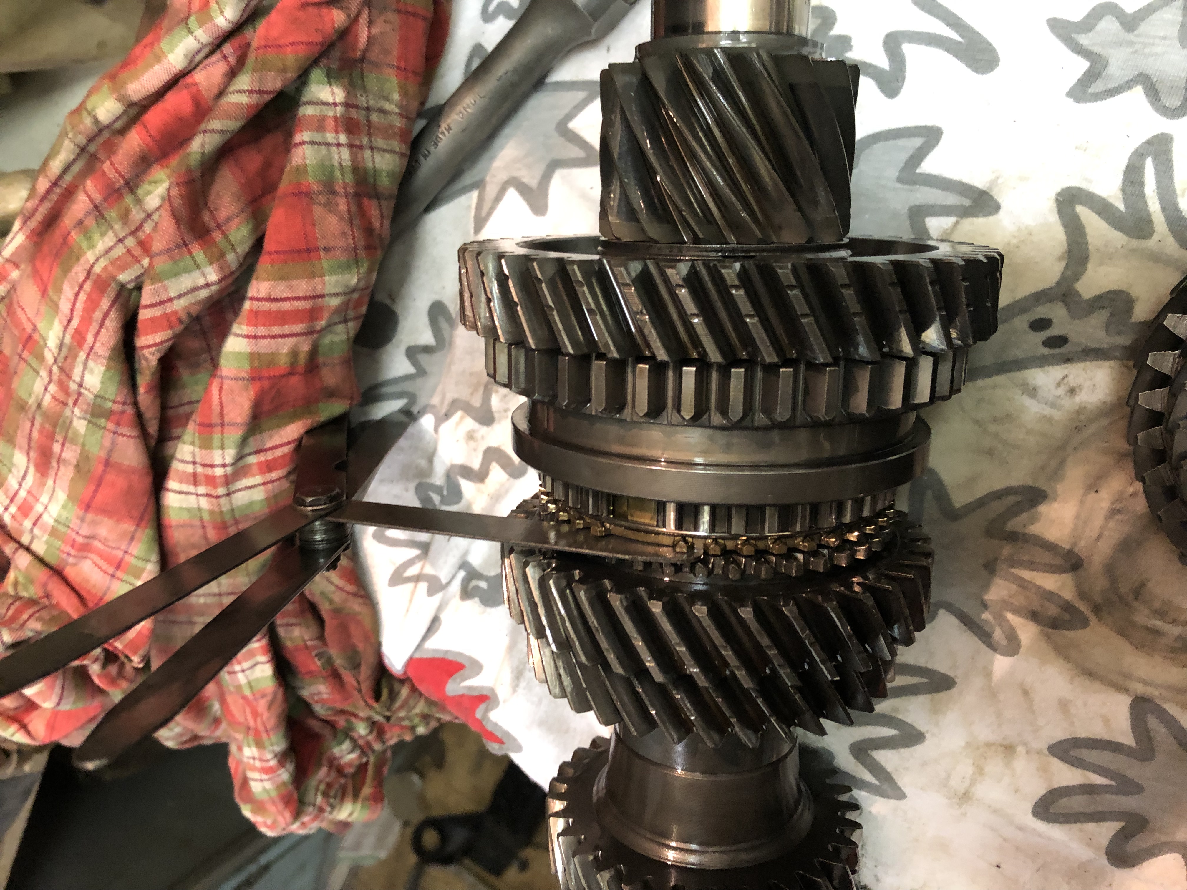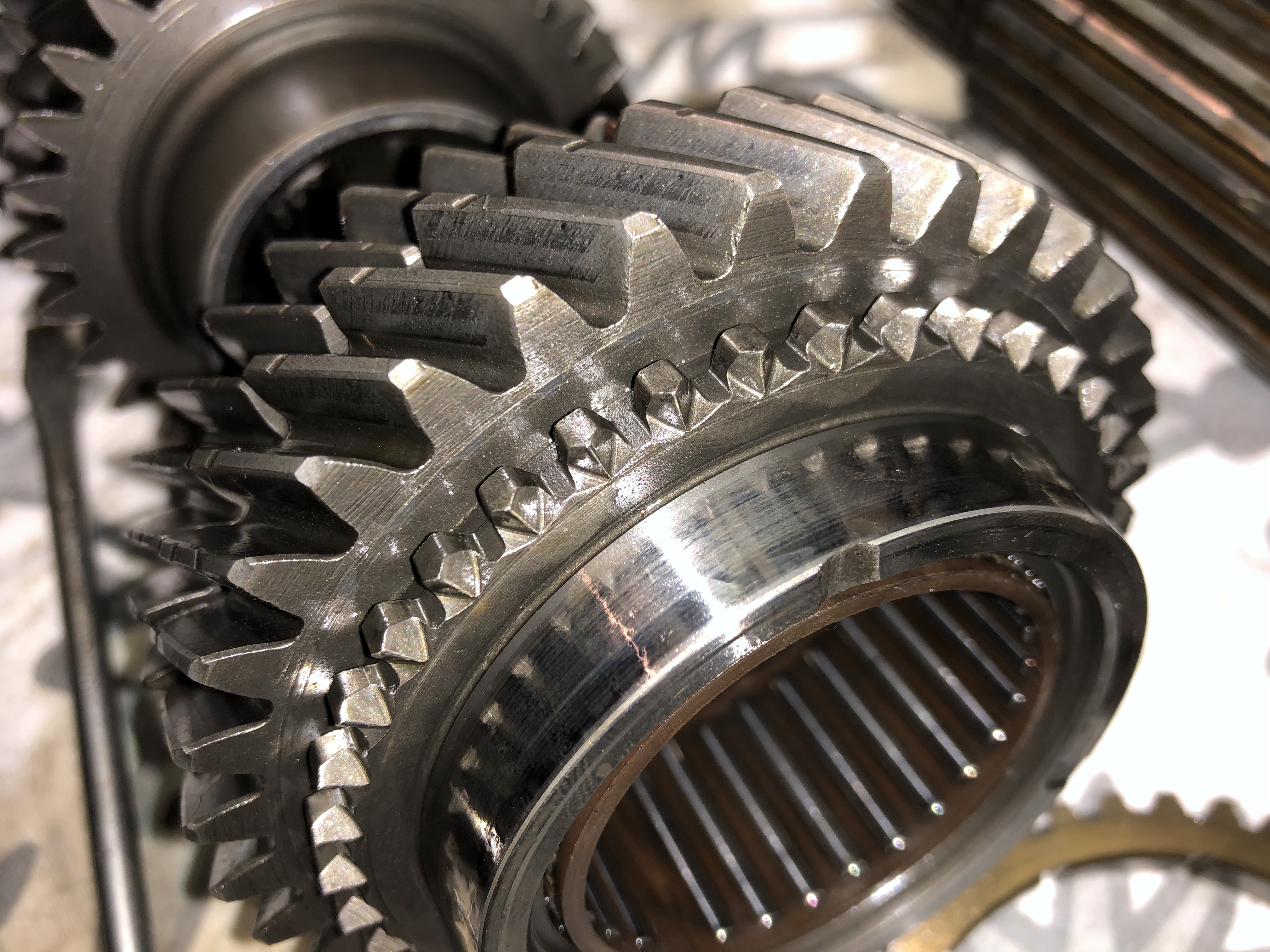 No co... ložiska vyměním co mám, protože někde ta převodovka hučí. A jinak jsem v ní objevil spoustu zajímavých faktů, třeba že zpátečka je ohryzaná a hlavně že 2. rychlost (counter shaft - 36) má celkem fest sjeté náběžné hrany na spojovacích zubech :-( ...