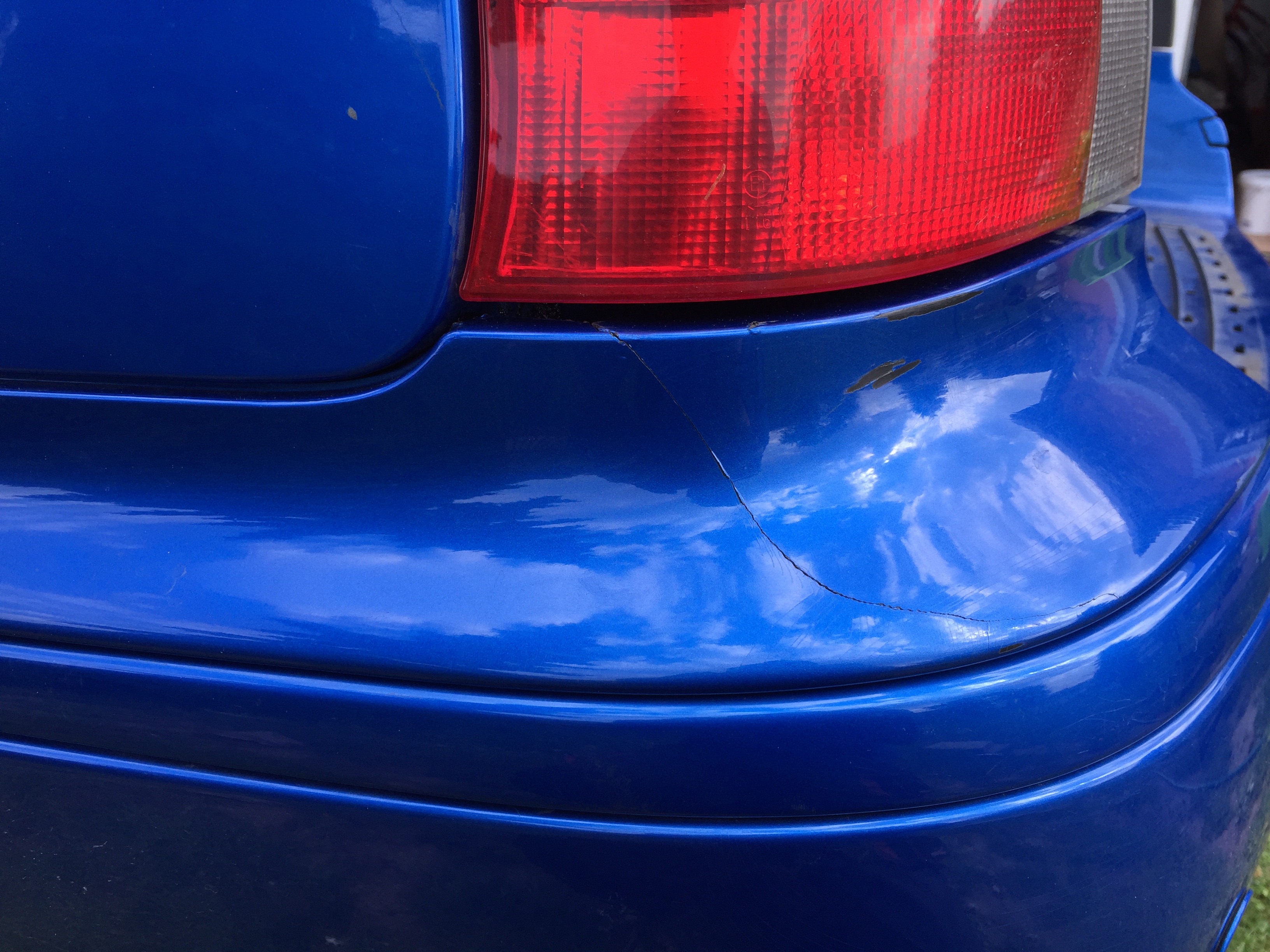 Měl jsem vzadu u levýho světla prasklej nárazník (už jsem to tak koupil), tak nastal čas ho opravit. Na autě to bylo v horní části rozšklebený tak 1 cm, bohužel nemám fotku...