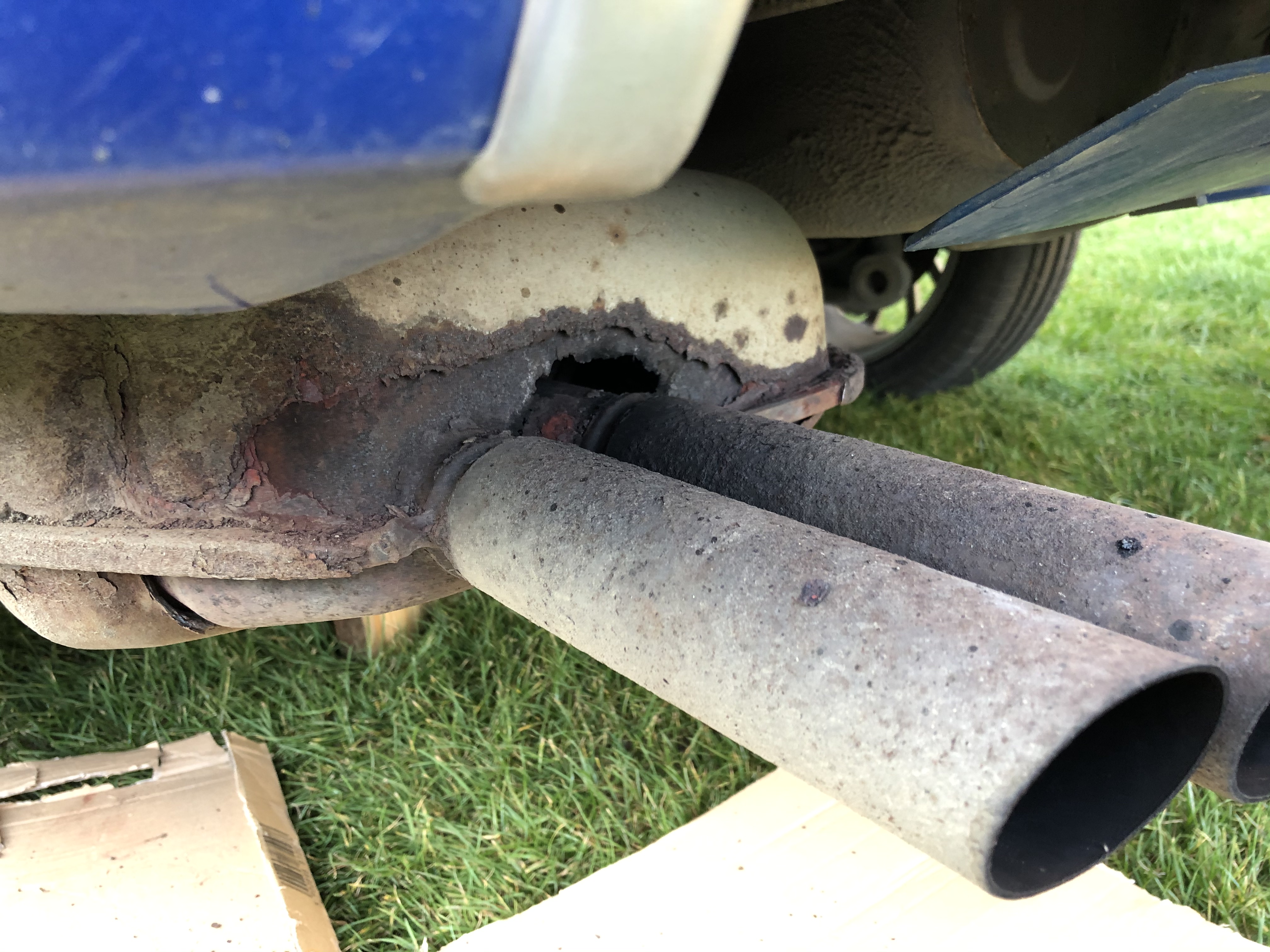 Výfuk vzadu je jak šepot květin. Bohužel teď kvůli tomu je víc slyšet ono klepání na zadní nápravě a hlavně musím ještě poléčit netěsnost na přední přírubě mezi svodem a Y....