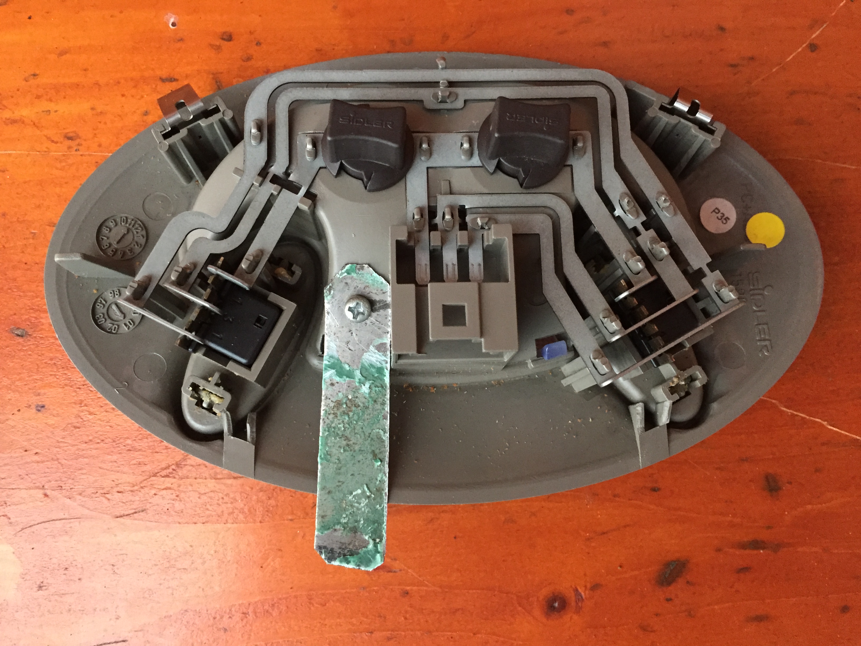 Jinak to řeším jednoduše - ze špachtle na kitování auta ustřihnu proužek (je pružná) a malým šroubkem do světýlka. U kombíka to stačí, u sedanu není ve stropě výztuha, tak to drží jen v tapecu a musí se do místa (mezery) kde byly původně ty plastový packy dát malý šroubky, který to pak drží rozepřený o tapec a neodtlačí to ty přední pérka...