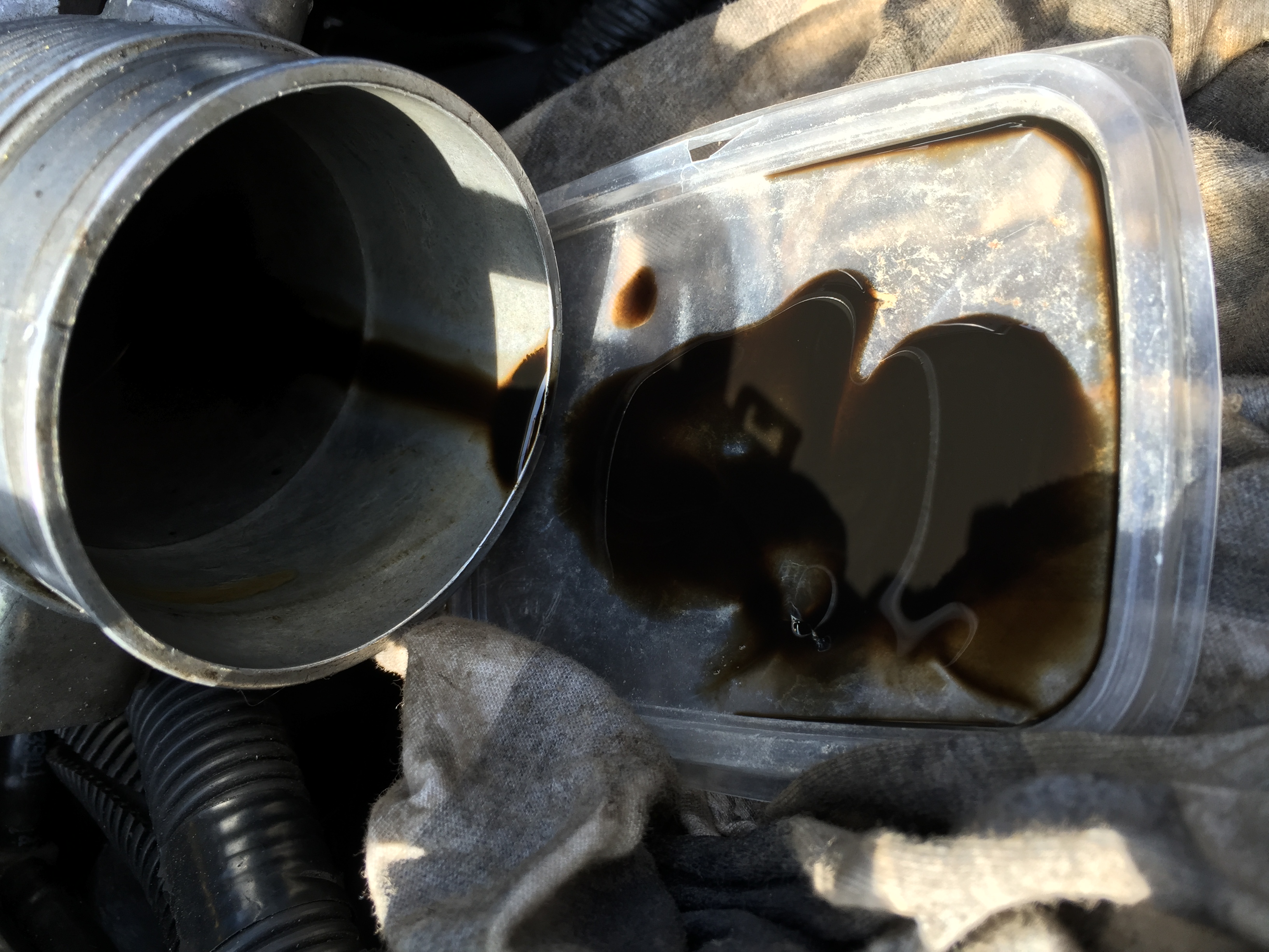 Je to tak 1:1 voda a olej. A přesto co se tam nachytá, vypadá sání po sundání vzduchovýho filtru takhle: