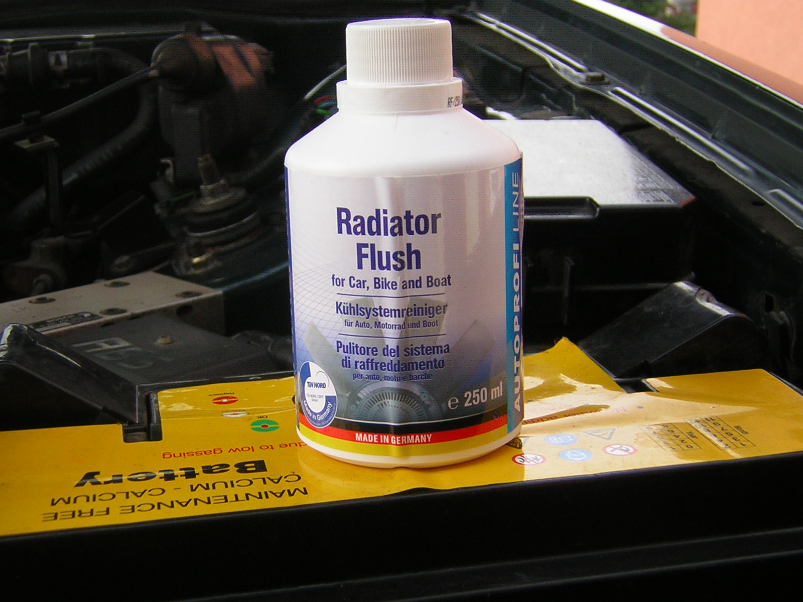 Tak dnes jsem se dal do avizované výměny chladiva. Nejdříve jsem nalil koupený přípravek a pak po krátkém projetí vypustil přes spodní hadici od chladiče skoro 8 litrů sraček