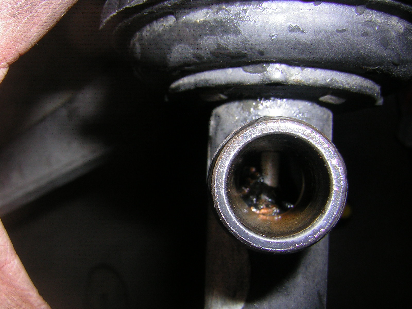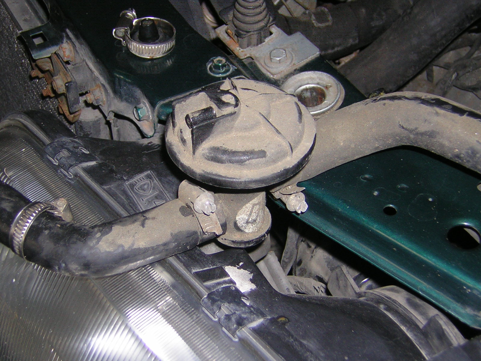 No nic, pojďme dál. Pak jsem odpojil hadici topení na které je ten plastový ventil, který podtlakem řídí své otvírání. Po demontáži obou hadic a proplachování jsem našel uvnitř ventilu něco jako chrchel ale po vyndání pinzetou jsem zjistil, že je to kus gumy, pravděpodobně membrány a nebo část kuželového těsnění ventilu. Když jsem pomocí pusy vyvinul podtlak tak ventil sice chodí,jde trochu doboku , ale hlavně neuzavírá se zcela a voda protéká