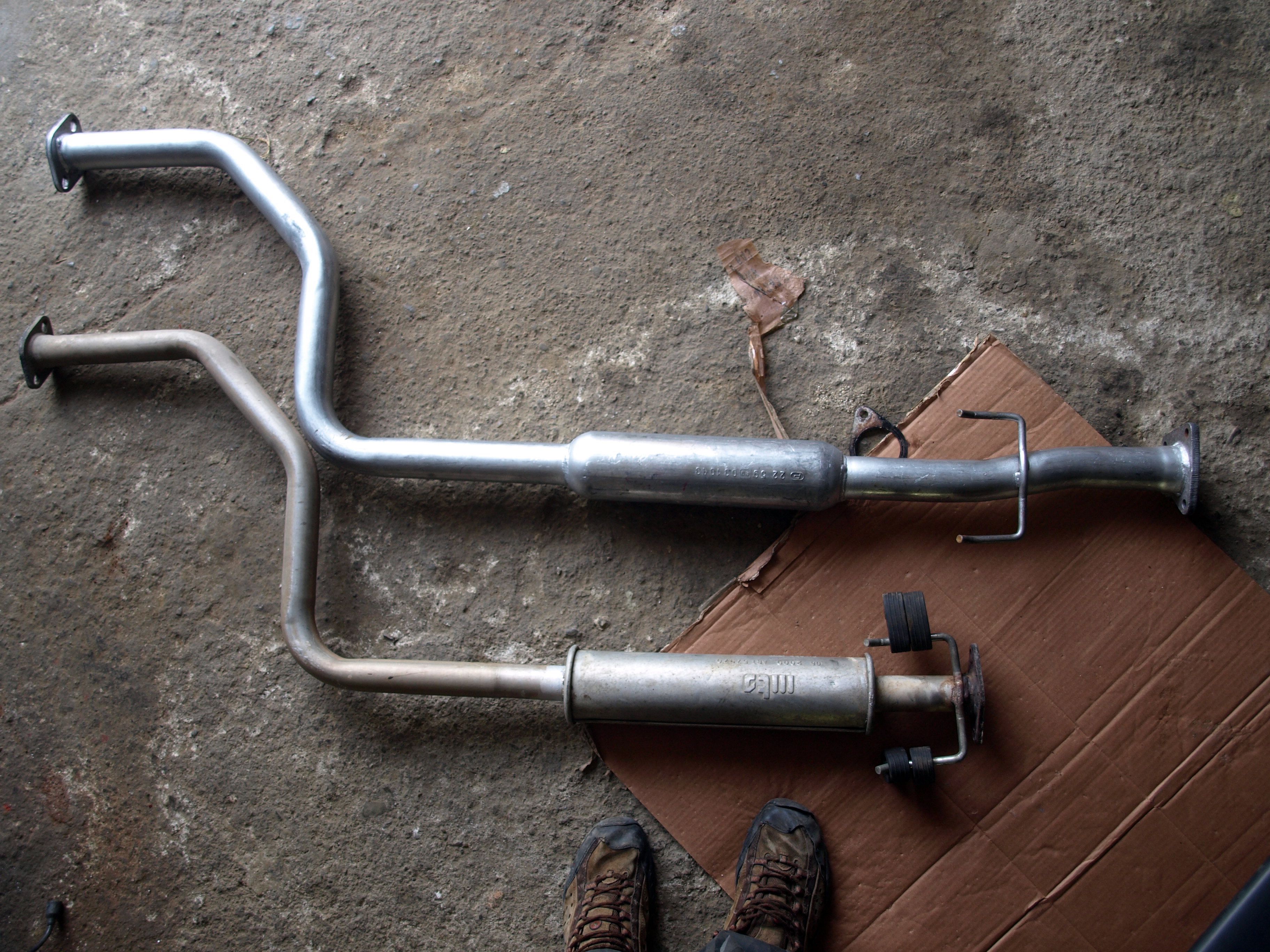 ... podařilo se nám napasovat střední díl výfuku. Nyní je to tedy tak, že za katem origo díl z MG ZR má cca 58 mm, před přírubou jde na cca 56 mm. Nový střed jde za přírubou z těch 56 mm na cca 55 mm a před posledním dílem to je asi 51 mm. V takové síle pak pokračuje k tlumiči. Není to asi úplně ončo, ale proti přechodu přímo z 56 mm na 45 mm je to lahoda