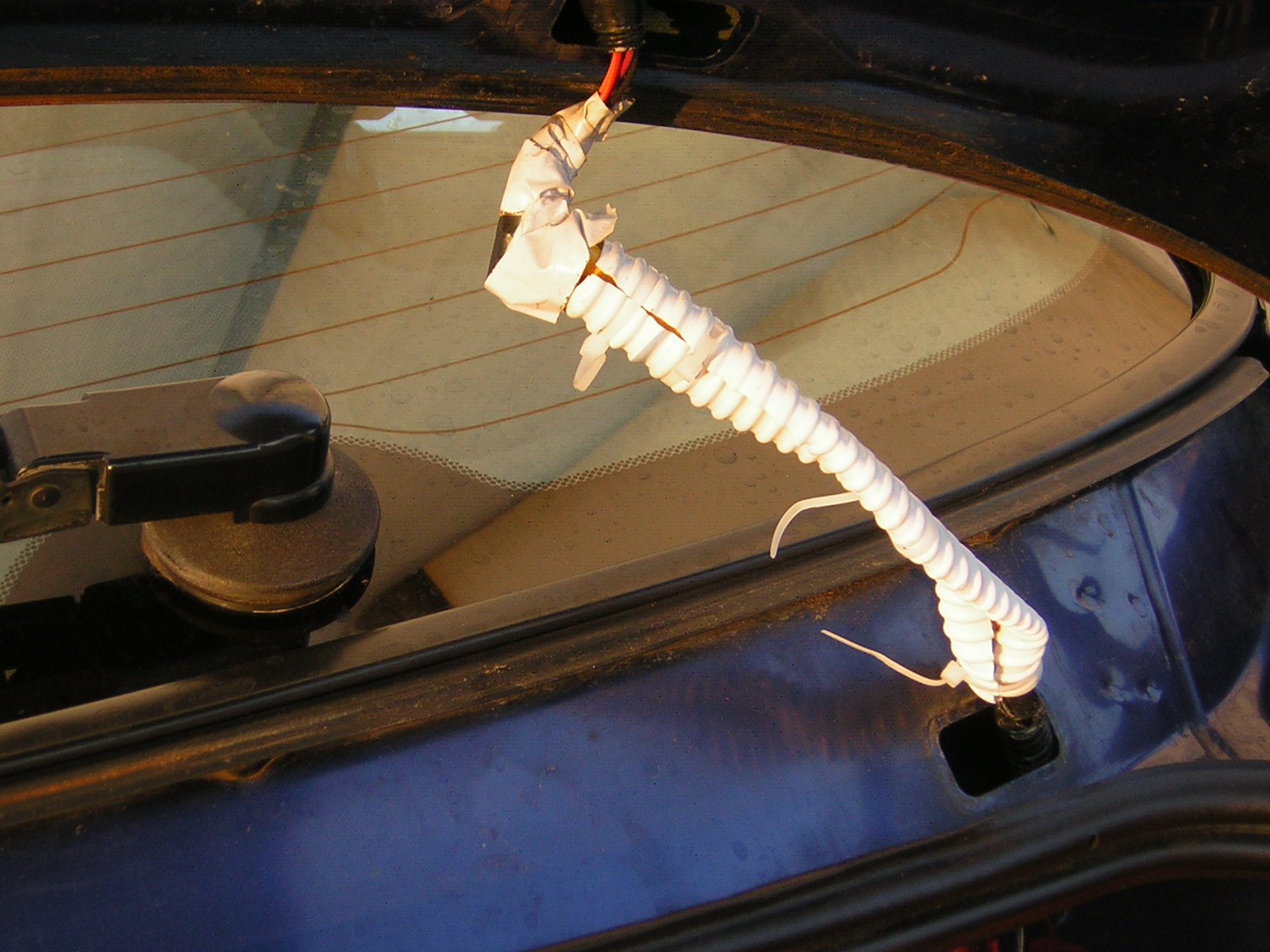 Nic jiného jsem k tomu kabelu nevkládal, protože to vyšlo skoro nafous. Když jsem zkoušel pomalu zavírat kufr, tak jsem se díval, že ta průchodka se ohýbá obloukem doboku jakoby směrem k pravému pantu a s ničím se nepotkává, ale samozřejmě budu to sledovat. Původní provedení se mi lámalo v místě, které je doteď na průchodce patrné cca 4 cm od spodního konce :idea: Každopádně je to slabé místo tohoto auta :(