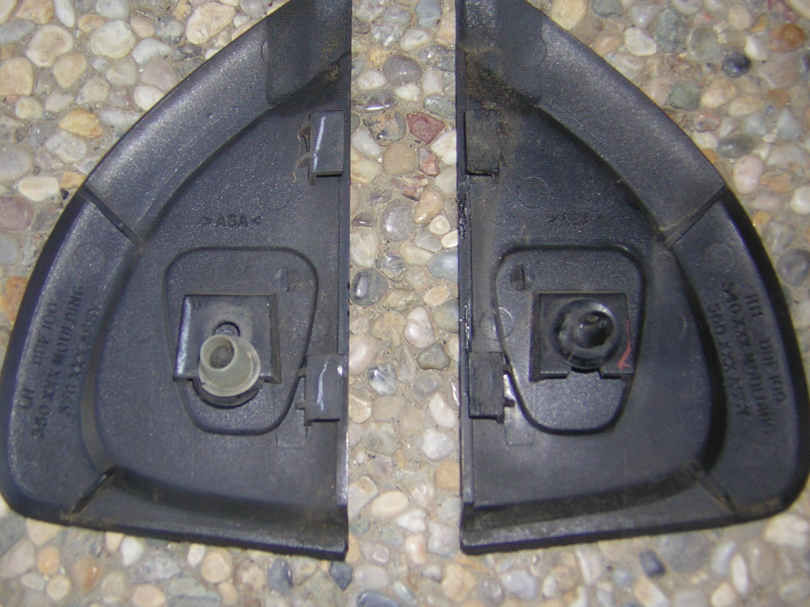 Už nevím kdo z kupéčkářů na Zavíráku v Kroměříži vykládal, že mu do auta zatékalo přes plasty se znakem za bočními okénky myslím, že to byl Demis. Oba znaky jsem sundal. Jeden šel velmi lehce, protože mi na něm chybí ta bílá plastová dutinka, která vytěsňuje i proti vodě 10 díru a do ní se nasouvá plastová stromečková příchytka
