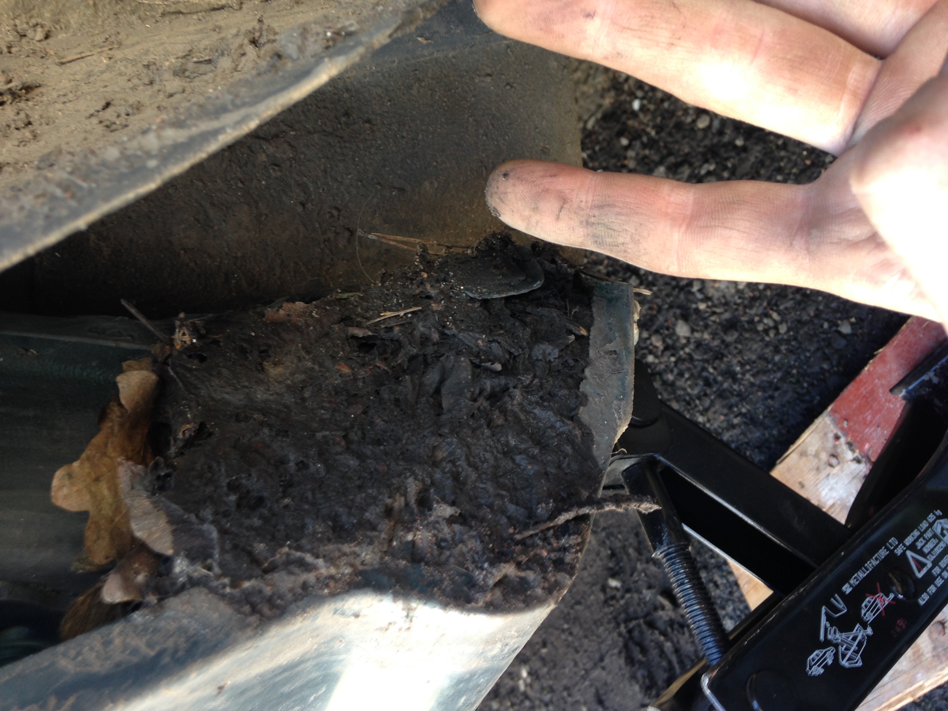 Když už dneska bylo tak krásně a měl jsem po práci chvilku čas tak jsem se rozhodl vyčistit spodky blatníků za podběhem.Povolil jsem tři šroubky co držely zástěrku,to stačilo,přístup byl dobrej.No humus tam byl snad ještě z Anglie