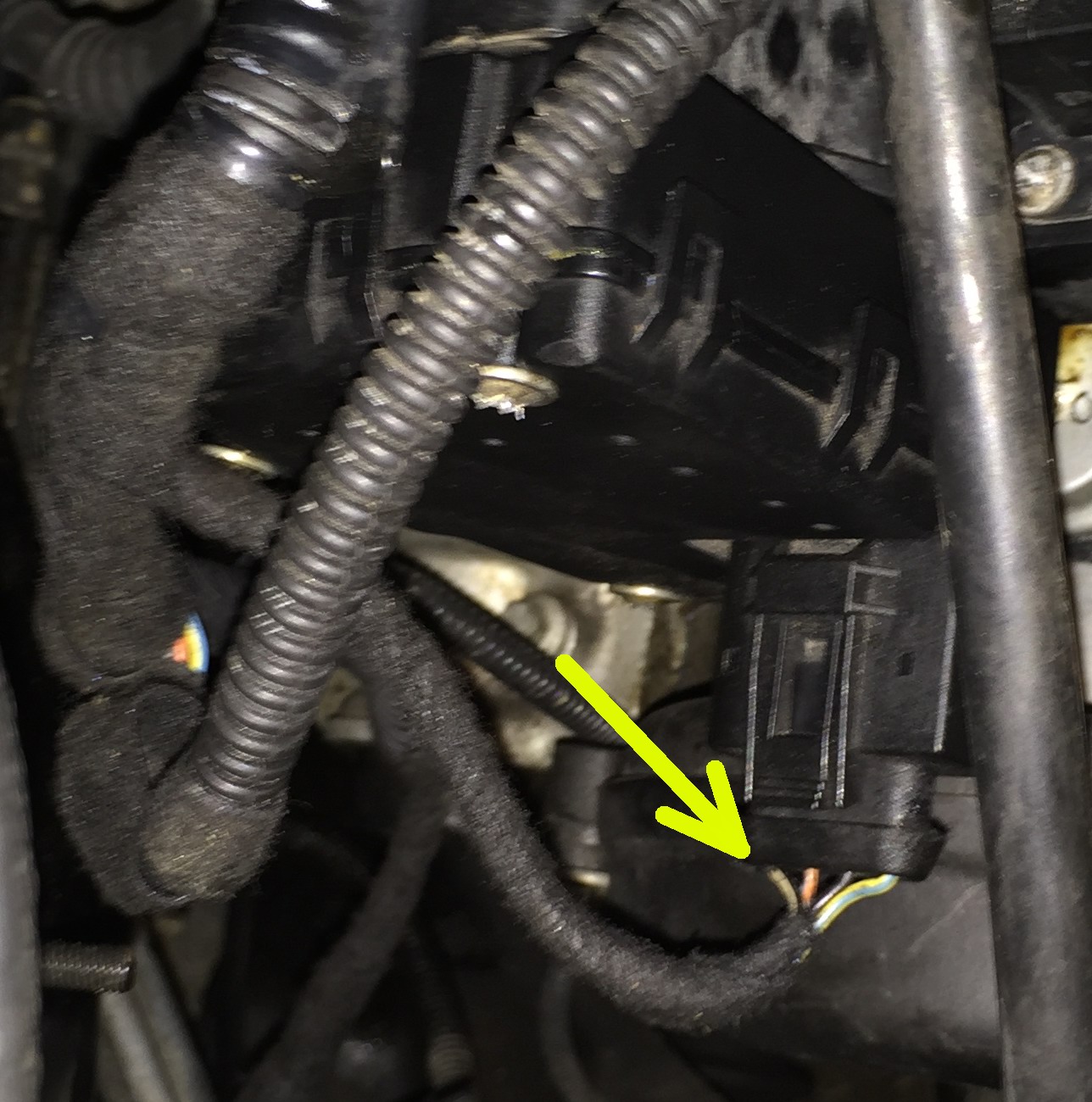 Na každým z těch motorků je konektor, který má čtyři dráty. Na tom horním nás bude zajímat oranžovo/žlutý, to je drát úplně vpravo, při pohledu zepředu na motor.