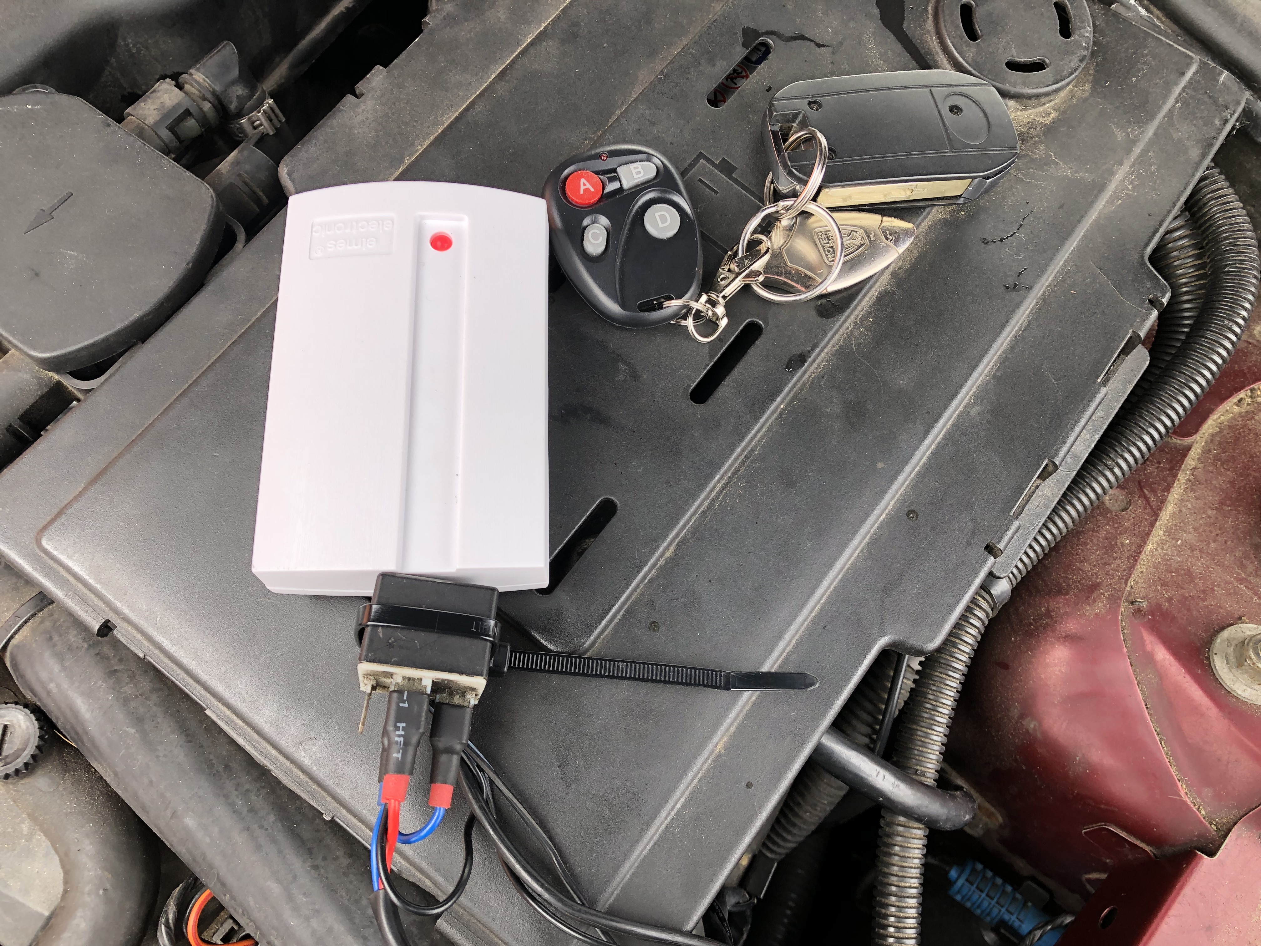 Rover na dálkový verze 2.0: Jedním tlačítkem se otevírá brána u baráku, druhým kufr, poslední dvě zap/vyp bufík (výstup pro bufík se automaticky odpojí po zapnutí klíčku).
