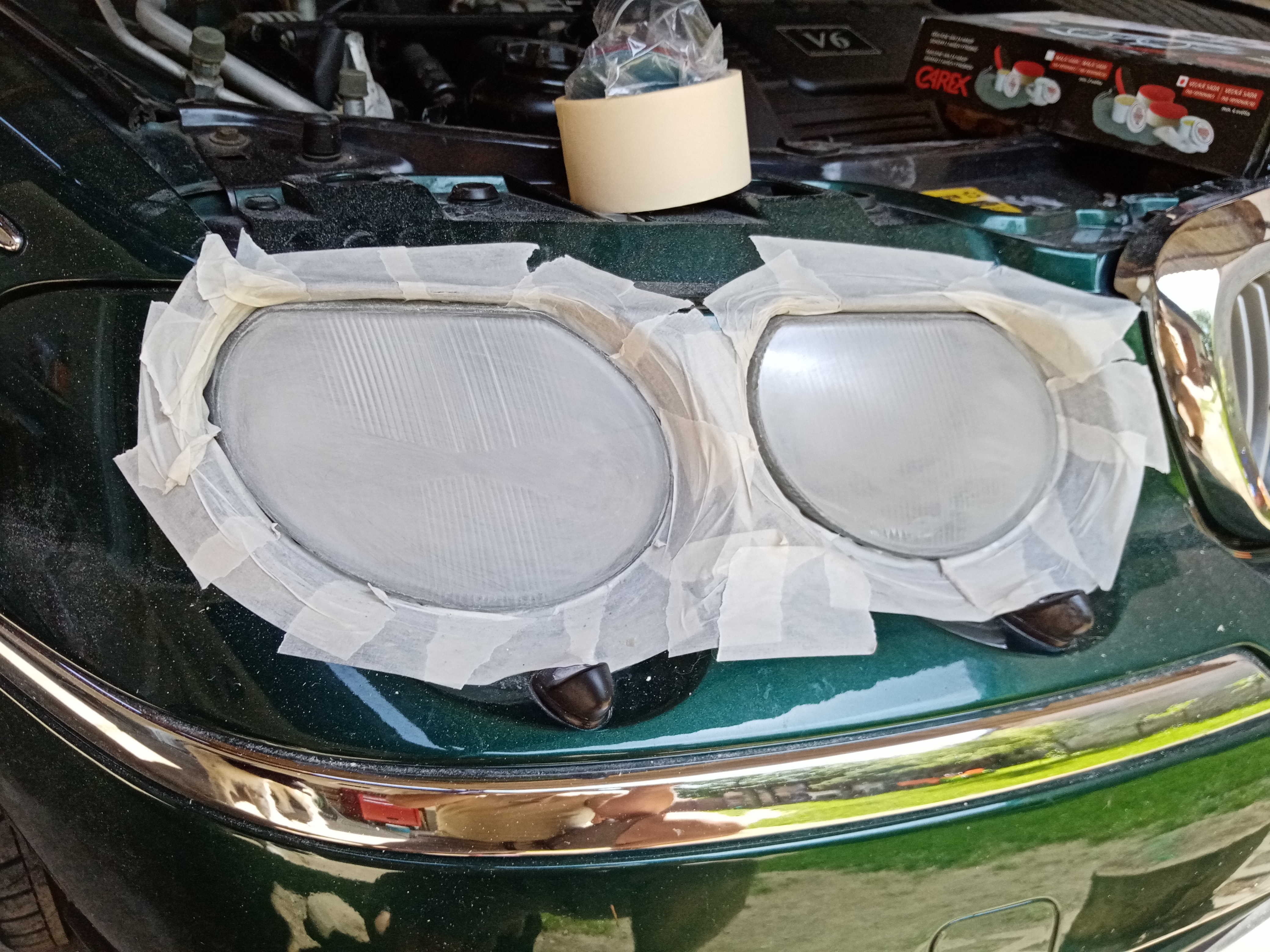 Zdar borci, je to téměř rok, co jsem se snažil zrenovovat přední světla broušením a lakováním bezbarvý lakem stejně jako to udělal kdysi táta. Bohužel to se ukázalo jako kravina, protože po roce byl lak znova popraskaný, hrubý a matný. Bohužel sundat ho byl opravdu boj, celá renovace mi trvala nějakých 8 hodin, padlo opravdu hodně brusného papíru, jeden aceton, ale výsledek snad je ucházející. Jen mi radost kazí bolavá záda, které mi rozhodně nepoděkovaly.