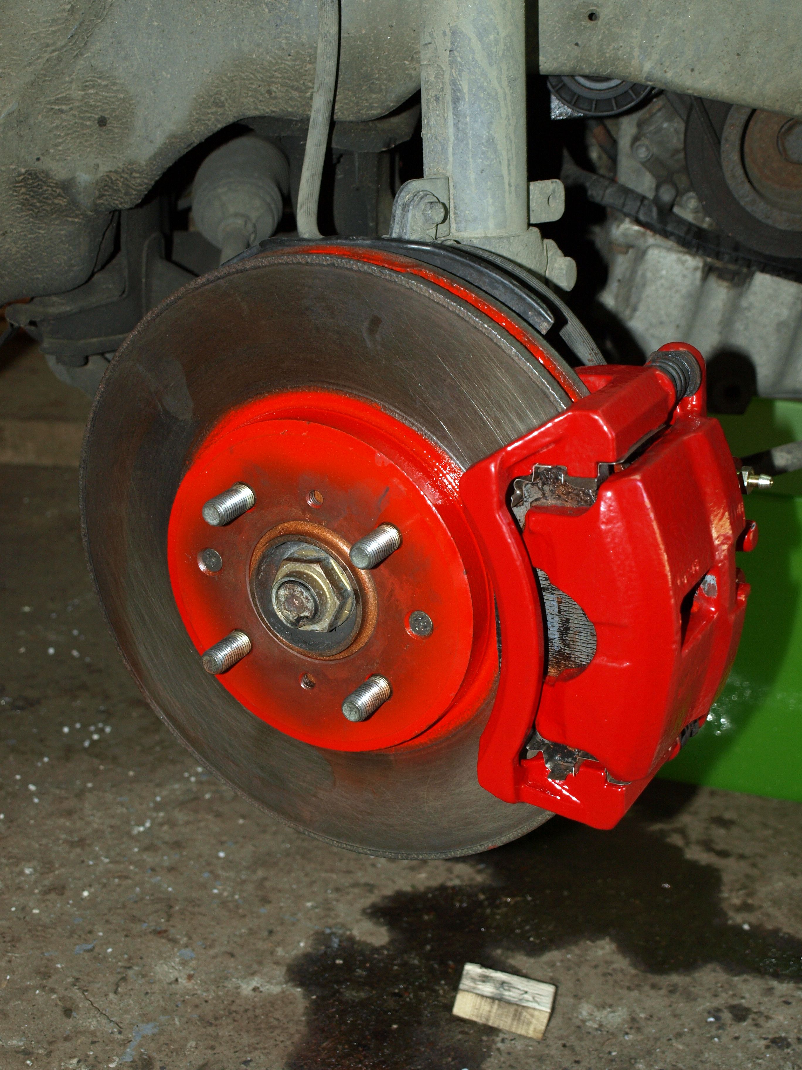Přední brzdy jsou na autě, vypadá to parádňácky :-) Ale budu muset asi ještě odvzdušňovat a taky zřejmě vyměním jeden čep. Jeden z čepů na brzdiči je s takovou gumovou objímkou uvnitř, ale na jednom z brzdičů je to moc tuhý a desky dost drhnou. Tak ho asi nahradím obyčejným, akorát že to bude mít větší vůli. A nebo z toho tu gumku sundám.