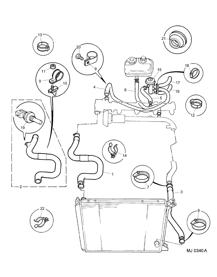 - pak podle obrázku dole si zkontroluj zda do a z hadic číslo 16, 17 jde horká topná voda, auto by totiž mělo topit i náporem bez nutnosti chodu ventilátoru. pokud jsou tyto hadice studené a hadice č.4 je teplá tak to znamená problém s ventilem č.15. Nevím jak je ovládán,protože diesel vůbec neznám, ale třeba u mě ho řídí podtlak a má problém právě opačný že mi topí pořád, ale už snad vím kde bude problém
