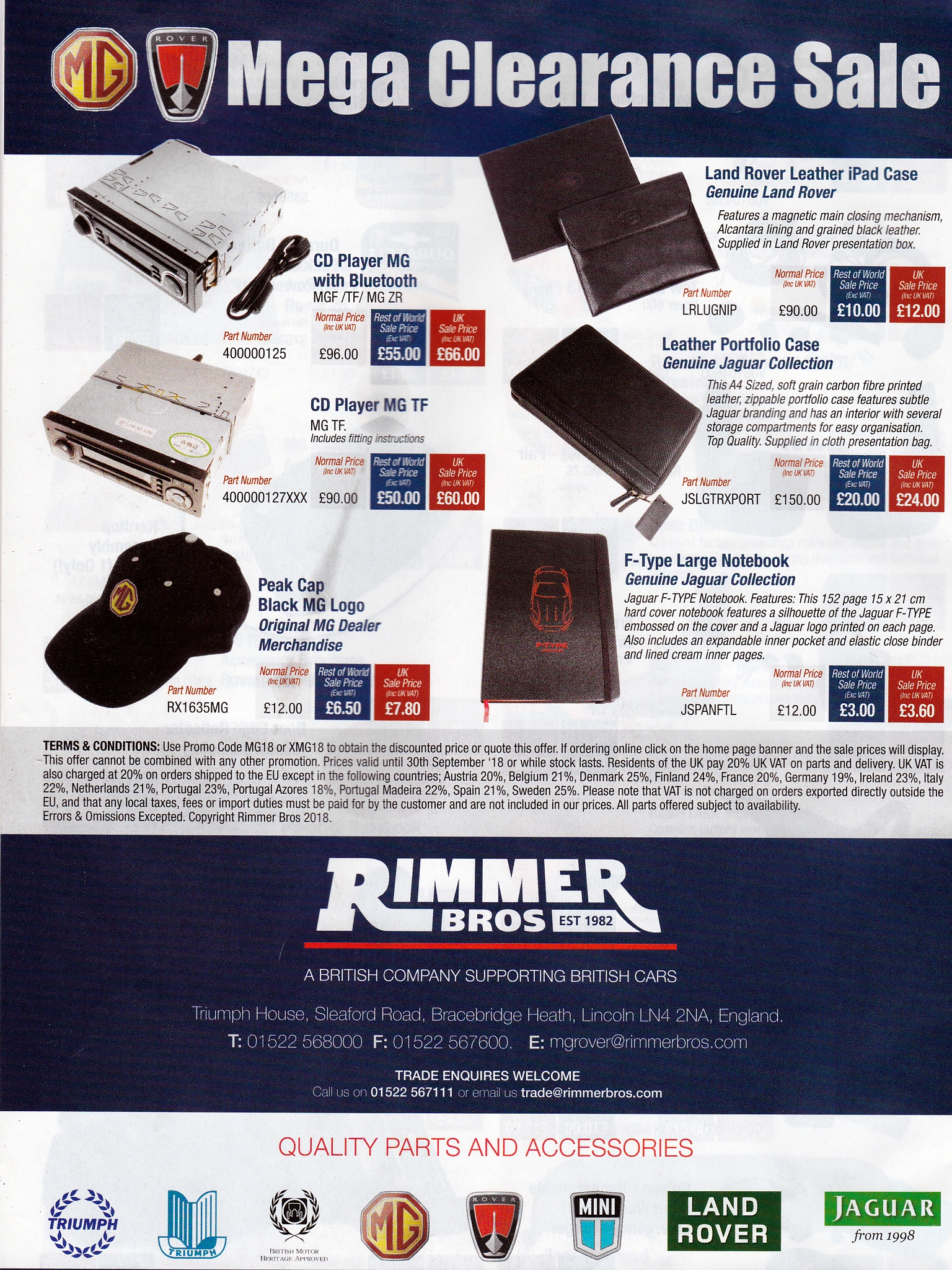 Dostal jsem poštou pozdrav z UK - katalog od Rimmerů, kde mám při použití přiděleného kódu možnost koupit spousty dílů za dost pěkné ceny. Pro mě platí ceny v modrém rámečku, přičemž patrně to bude plus ještě 20% daň a samozřejmě poštovné. Ceny jsou platné do 30. září 2018. Kdo takový katalog nedostal (nenakupoval nikdy u Rimmerů), můžu naskenovat zbytek stránek a zveřejnit je, kdyby měl někdo zájem o díly.