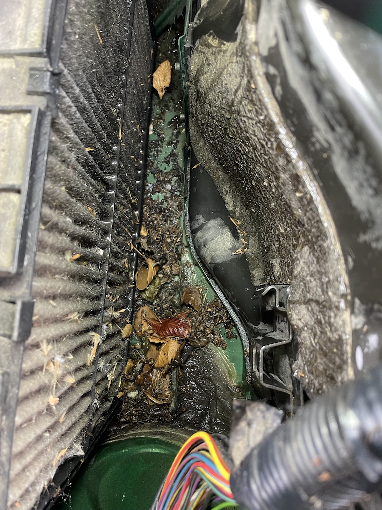 Když už jsem to měl rozdělaný, samozřejmě jsem vyčistil odtoky. Pod posilovačem byl tak ucpanej, že jsem musel pod auto a samozřejmě dostal sprchu...